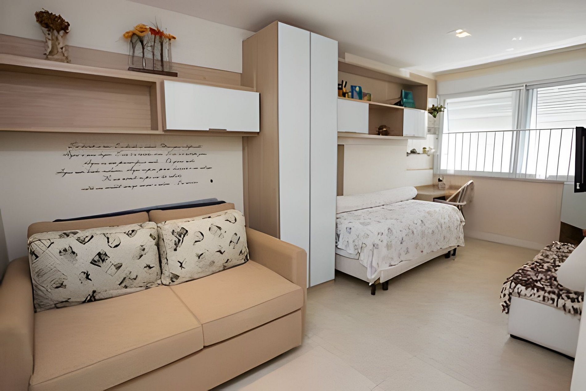 With a modern decoration and well-utilized spaces, the apartment offers an exceptional hosting experience. The 3 bedrooms, with 2 suites, are spacious and cozy, equipped with 1 double bed, 2 single beds, and 1 double sofa bed, accommodating up to 8 guests with all comfort. The suite next to the social bathroom also has a Smart Tv. Each room was designed to provide a relaxing and tranquil atmosphere, ensuring a good night's sleep after a day exploring the wonders of Rio.