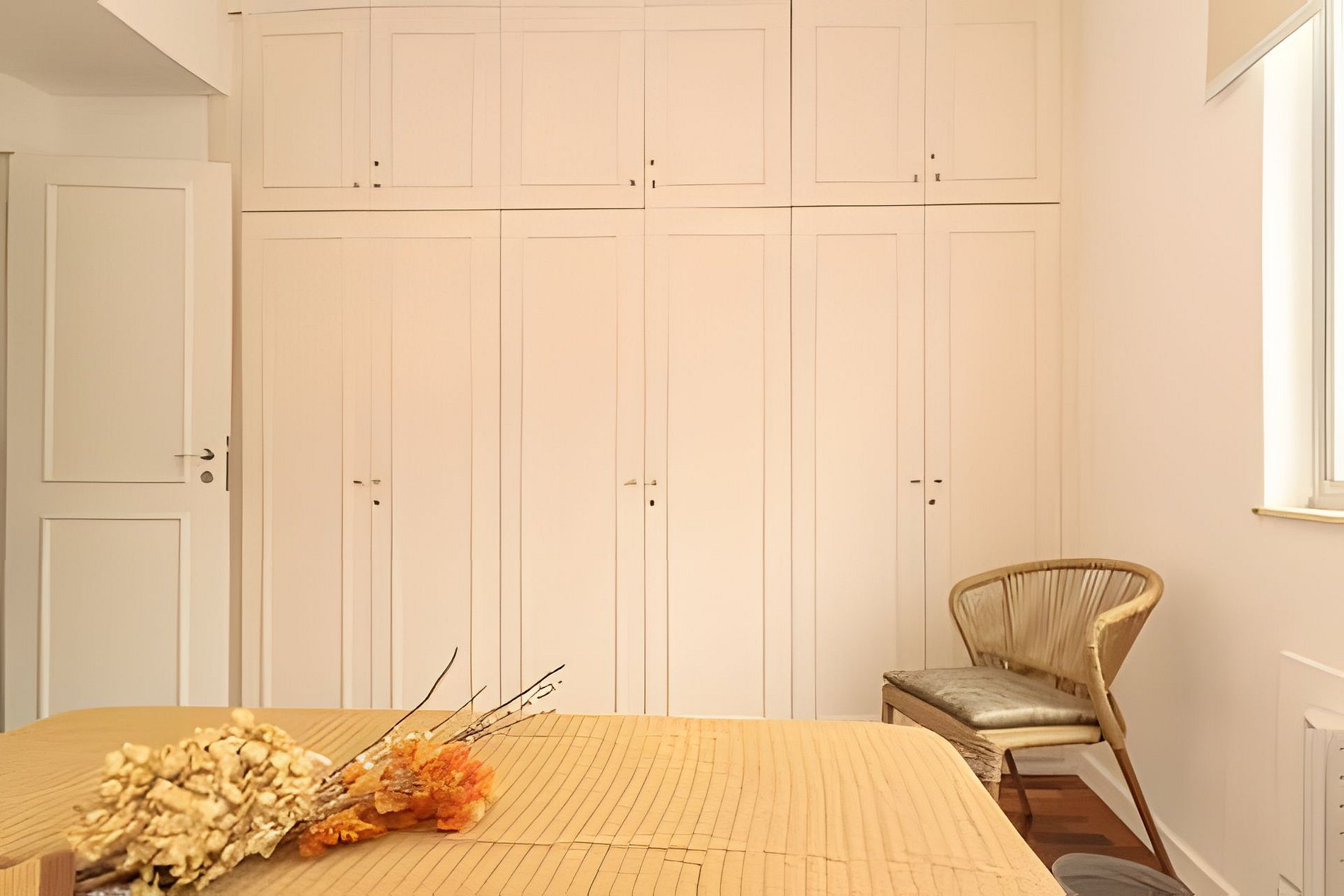 The two rooms are spacious, well-lit and have air conditioning, large wardrobes and blackout curtains. One of them has a suite with a private bathroom, queen bed and balcony, and the other has a double bed.