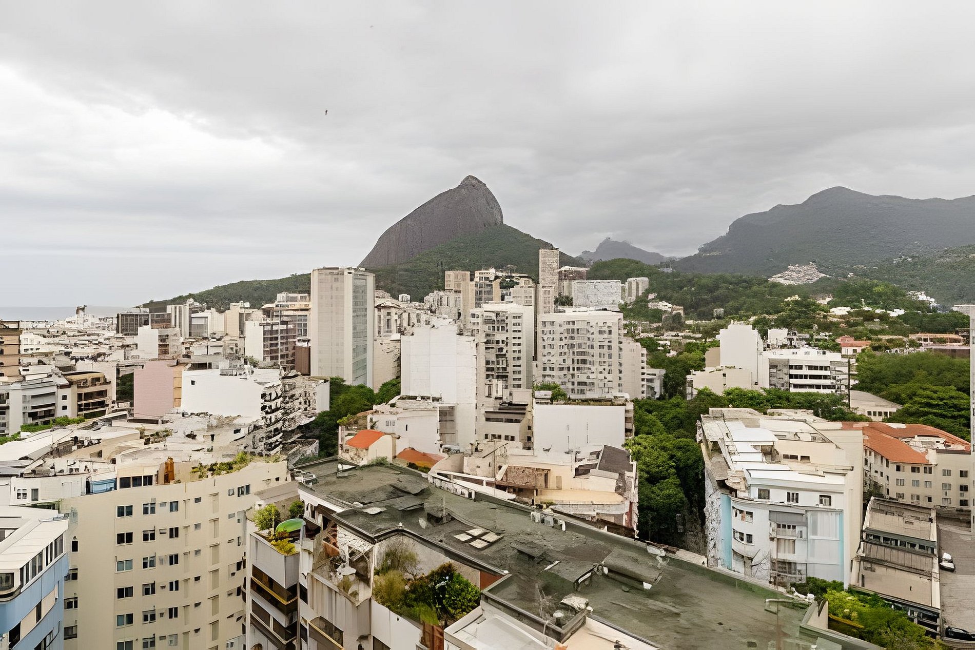 The balcony offers a stunning view of Morro Dois Irmãos, Pedra da Gávea, Christ the Redeemer, and Rodrigo de Freitas Lagoon, 4 of the main tourist attractions in the city.
