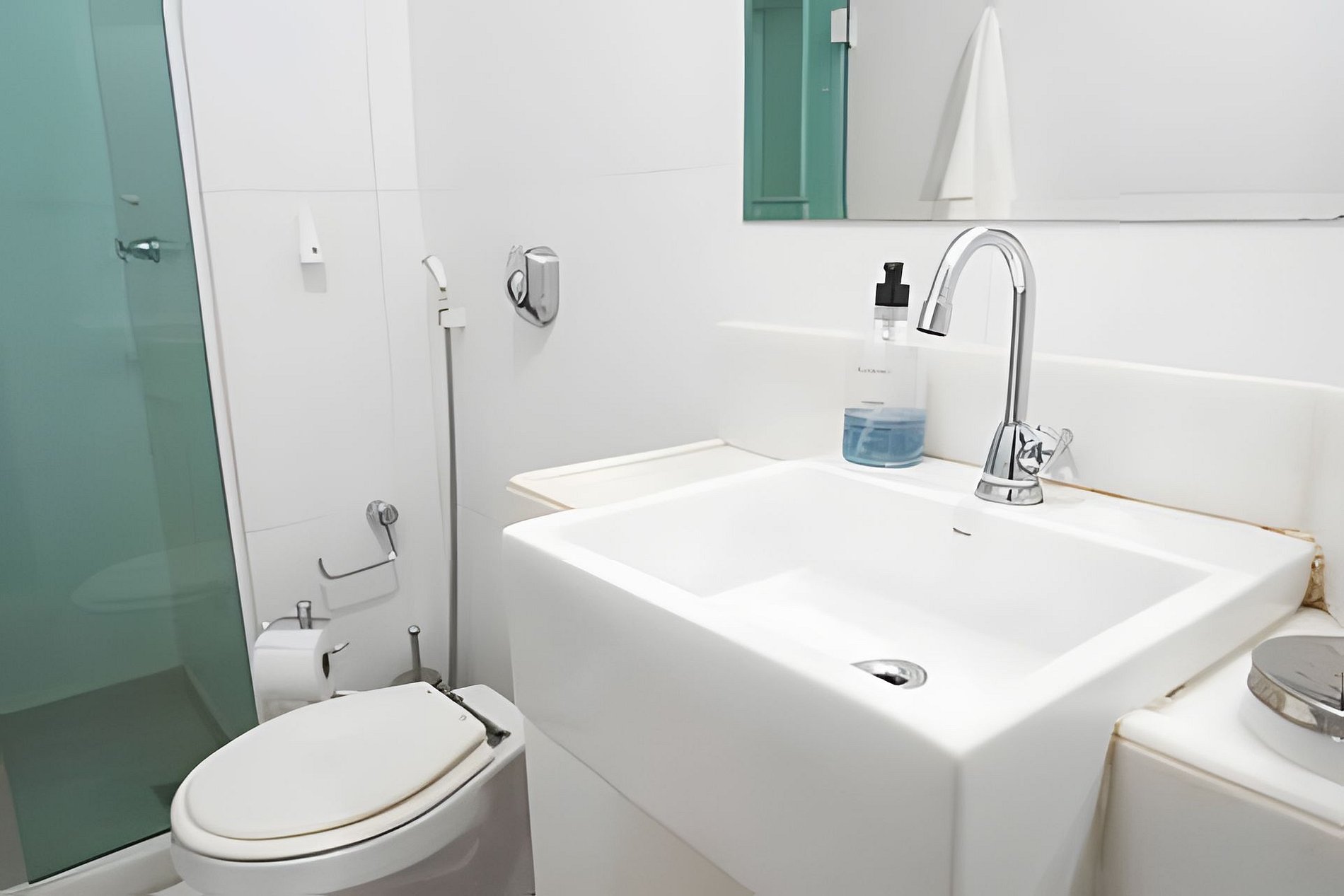 A modern bathroom equipped to meet all your needs, ensuring privacy and comfort.