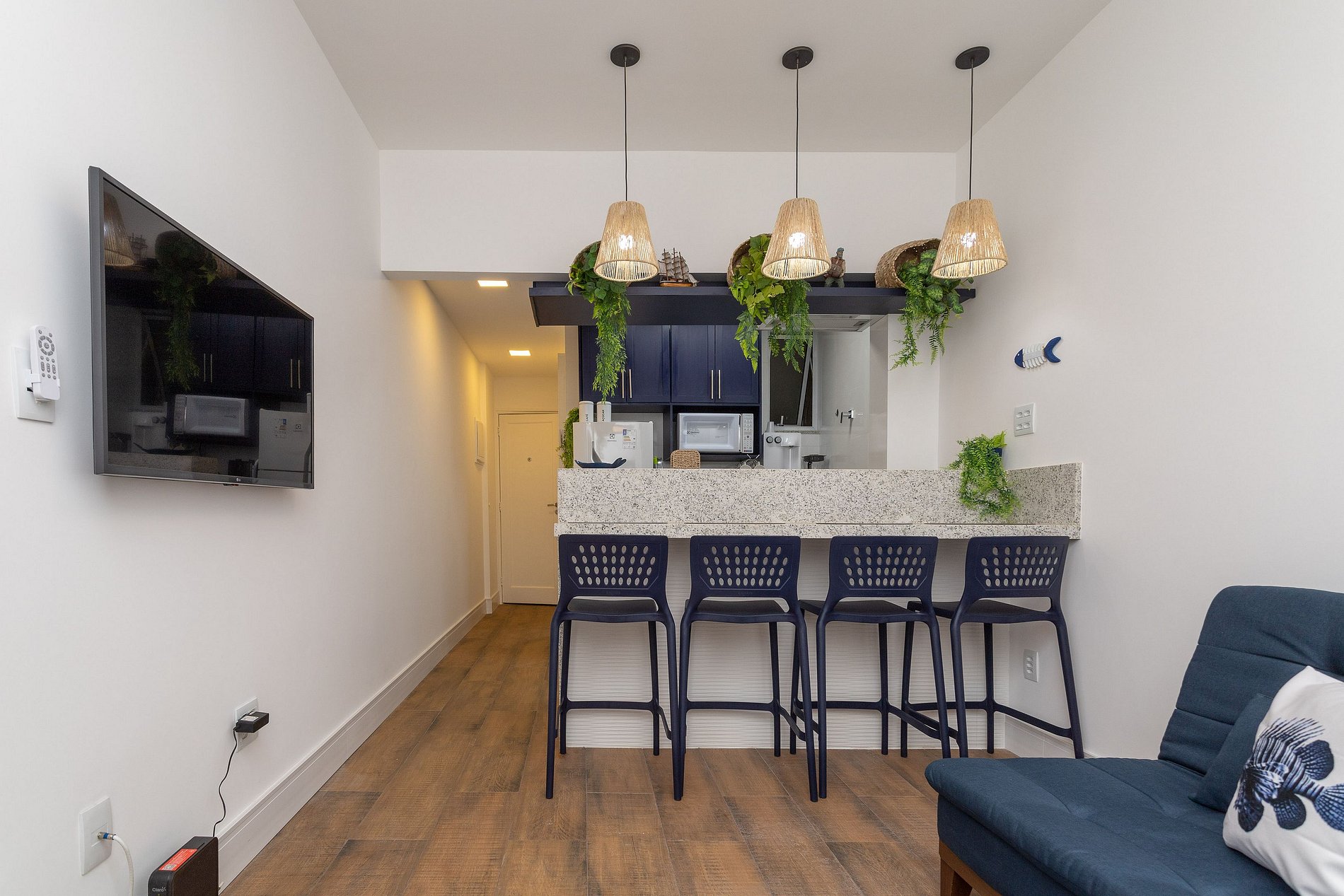 This functional, newly renovated studio has been completely redesigned and equipped with new furniture and decor. It boasts a prime location, situated one block from the beach, 50 m from the famous Copacabana boardwalk, the stage for the world's biggest New Year's Eve celebrations and international concerts (Rolling Stones, Madonna, Lady Gaga) and just a few steps away from all kinds of shops and services in the neighborhood, such as restaurants, bars and the Arcoverde subway station.