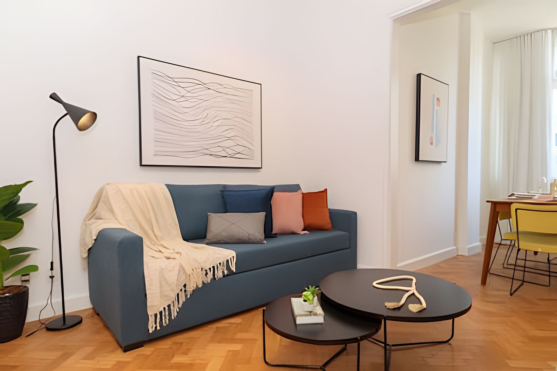The well-set up room is composed of a comfortable queen-size sofa bed, coffee table, smart Tv, dining table for 6 people.