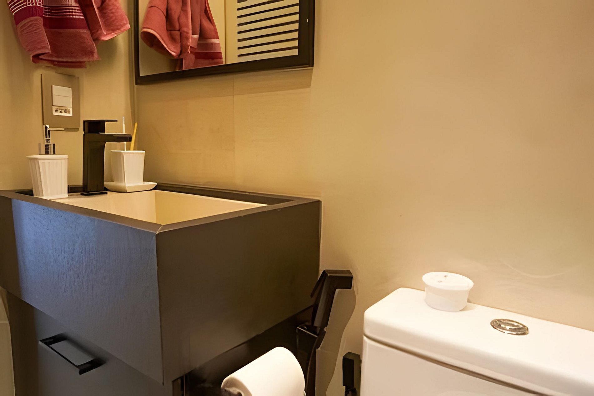 The apartment has a living room with a sofa bed, split air conditioning, Vivo fiber internet and a window with a view of the trees, in addition to a small kitchen equipped with various utensils and appliances such as electric kettle, coffee filter, induction cooktop, oven, refrigerator and microwave. The bedroom is a suite with a double bed, split air conditioning, Smart Tv and a small balcony where it is possible to relax amid the coolness of the trees, making it possible to accommodate up to 4 people on the property, we provide bed and bath linens.