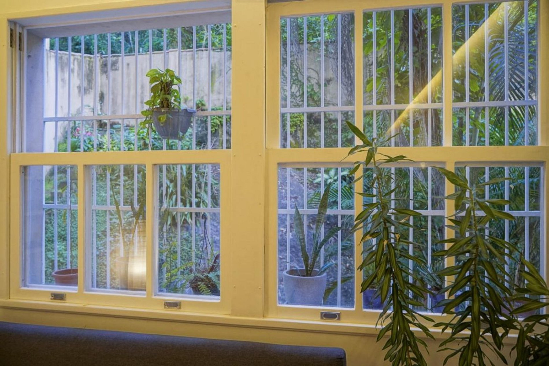 The comfortable suite has a queen-size bed, bookcase, two bedside tables, new split air conditioning, top-of-the-line noise-reducing windows, and a 50" Samsung Smart TV. Completing the suite is a full bathroom with shower and a spacious powder room with sink and hot water shower.