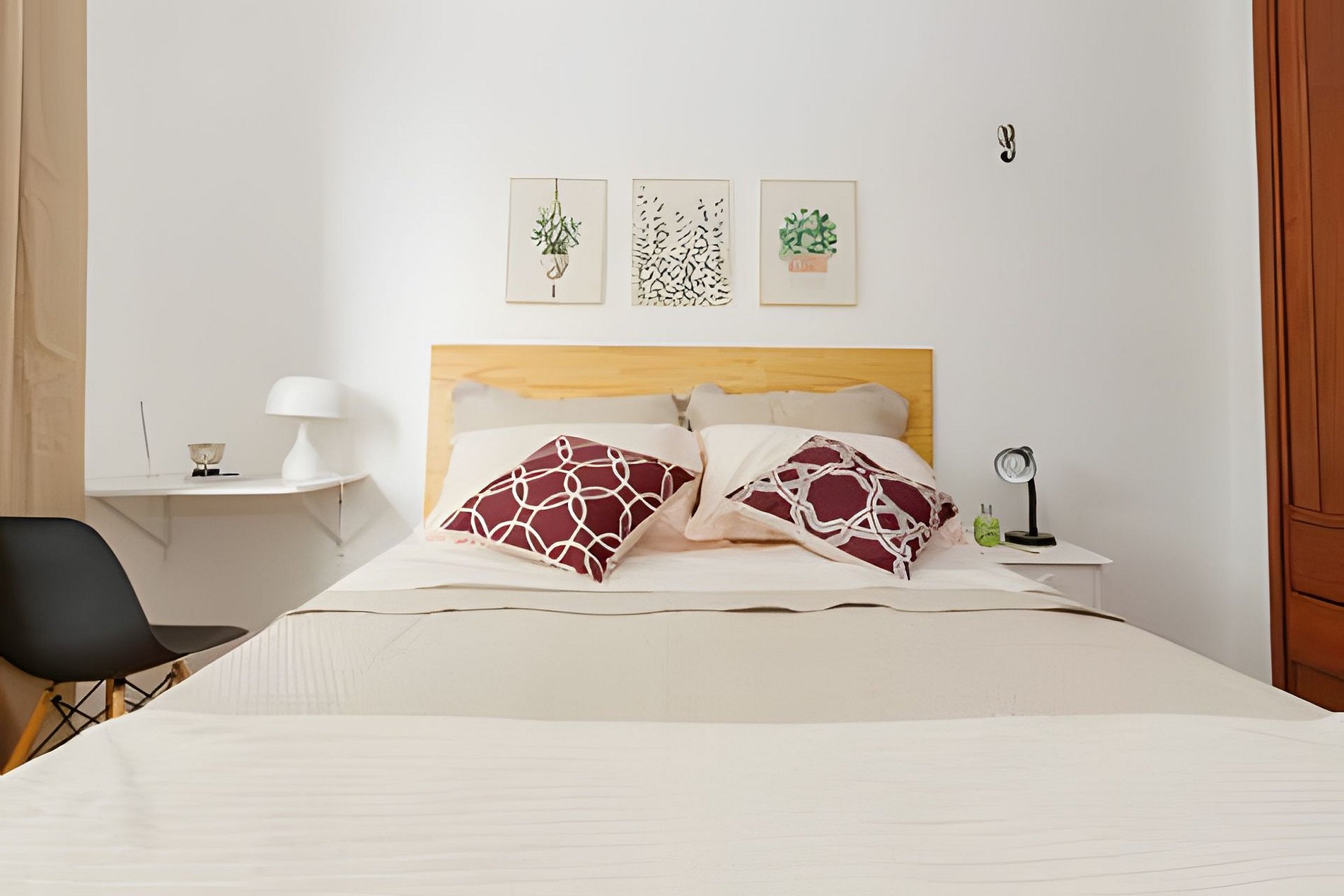 Additionally, the apartment has 3 bedrooms, with 2 having a double bed and air conditioning. The third bedroom, a former service room transformed into a small room, has a fan.