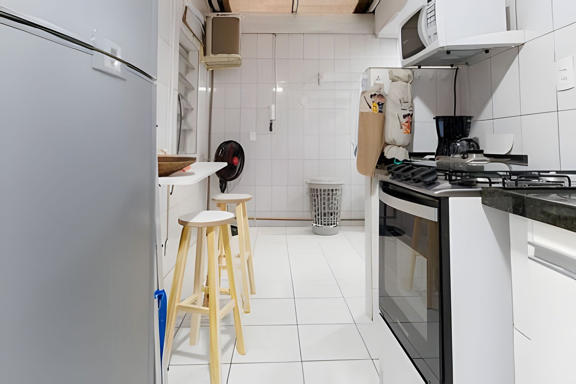In addition to all these amenities, the apartment has a practical and functional service area, equipped with a washing machine and clothesline, facilitating the organization and maintenance of your stay.