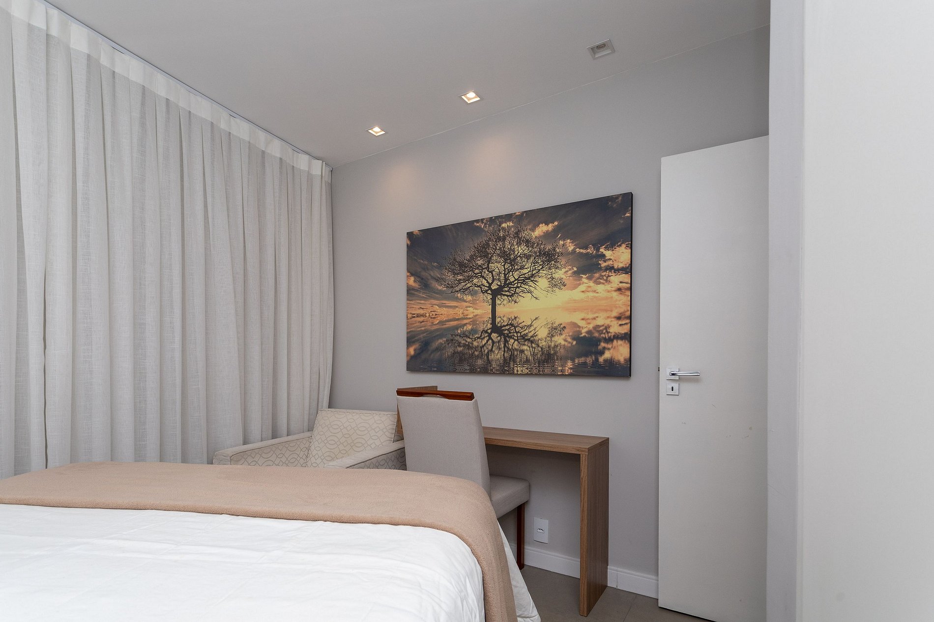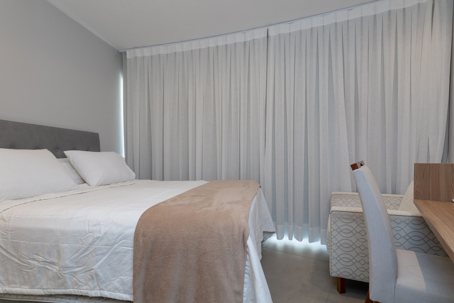 Bedroom 3: Queen bed, wardrobe, air conditioning, desk and black out curtain