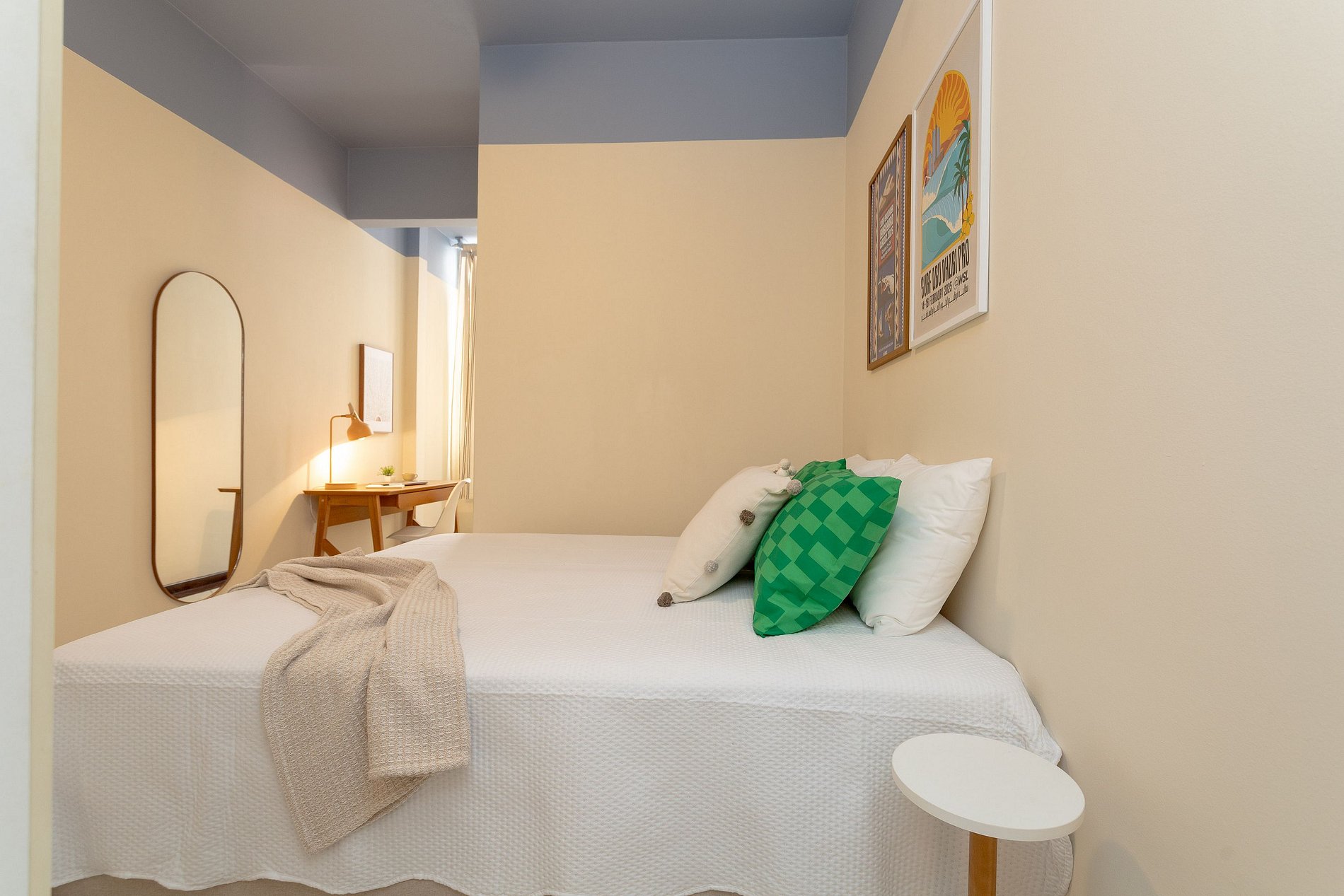 Bedroom 2: One double bed that can be converted into two single beds, closets, desk, and ceiling fan.