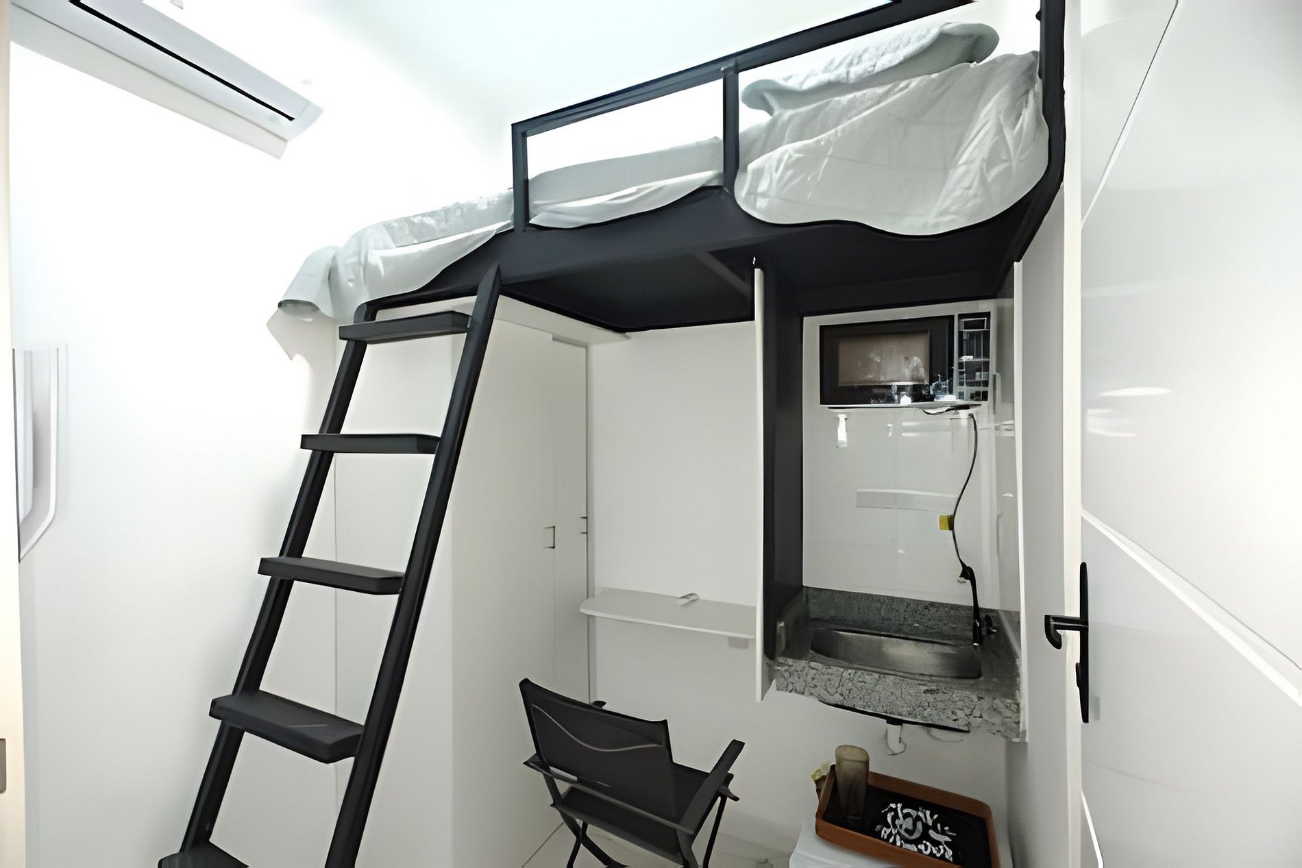 Ven a hospedarte en el más compacto inmueble de Río de Janeiro. Nuestro estudio cápsula está ubicado en el corazón de Leblon a 6 minutos de la playa, 4 minutos del metro Antero de Quental y cerca de todo tipo de comercios y servicios del barrio, como restaurantes, bares, tiendas, bancos, supermercados, Shopping Leblon, etc.
