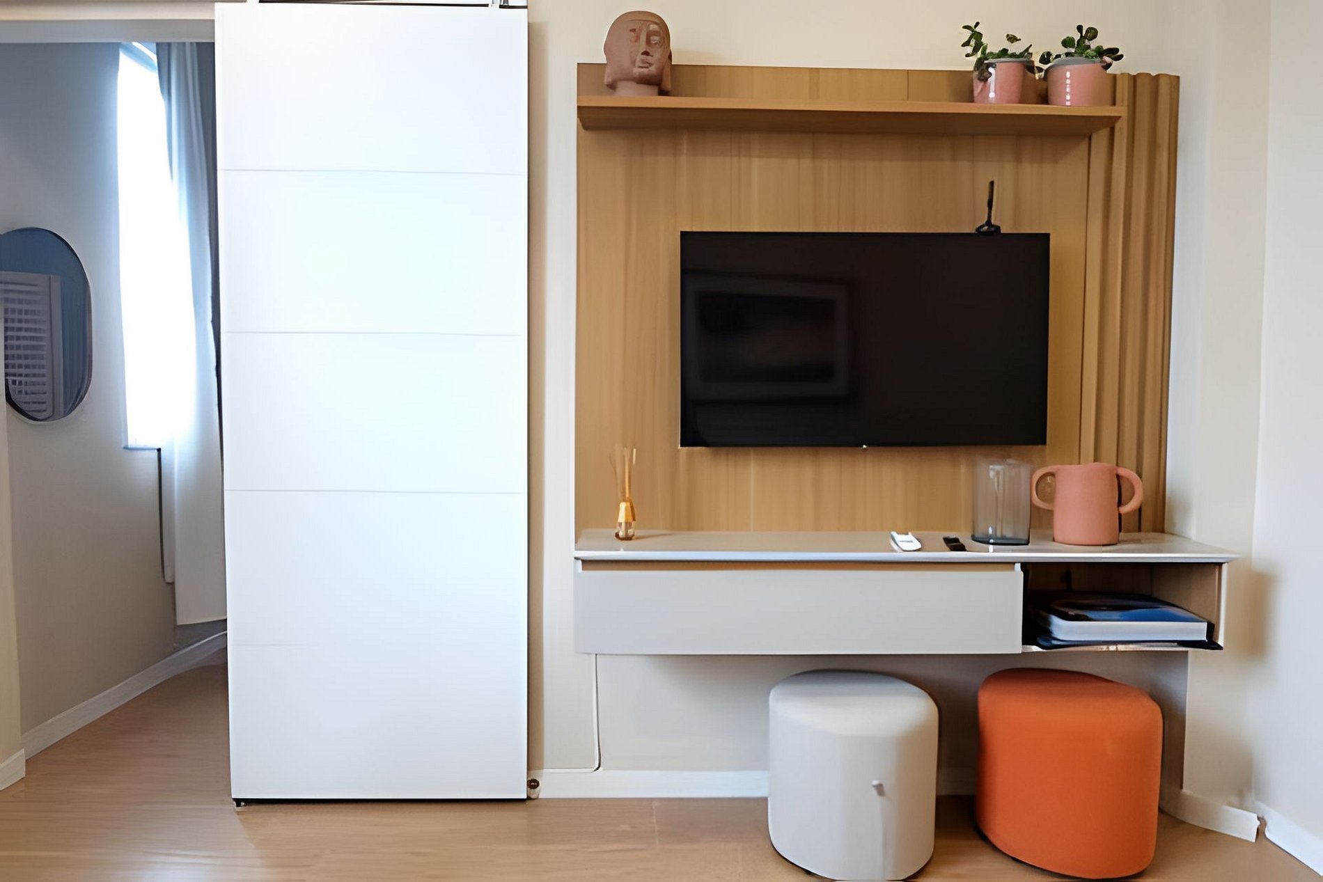 Nuestro estudio es perfecto para familias o grupos de hasta 4 personas. Cuenta con cama queen size, armario, Tv y aire acondicionado en la habitación y sala con sofá-cama de matrimonio, Tv, mesa de comedor y aire acondicionado. Las ventanas del apartamento son insonorizadas y acompañan un espacio perfecto para home office, con todo el confort y utensilios necesarios.