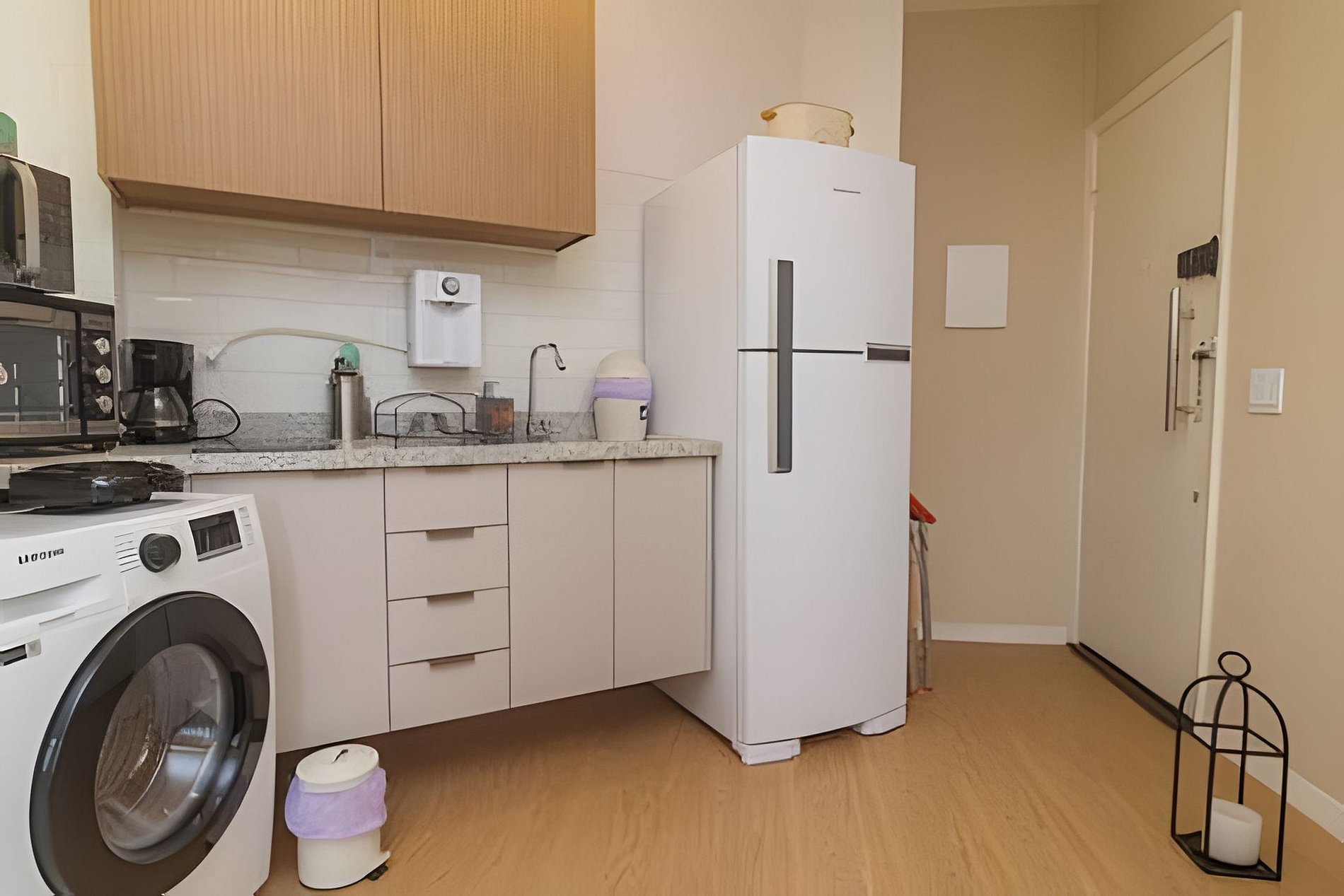 La cocina es completa y cuenta con lavadora y secadora, placa de inducción de 2 fuegos, nevera, microondas, horno eléctrico, tostadora y los utensilios necesarios para preparar sus comidas.