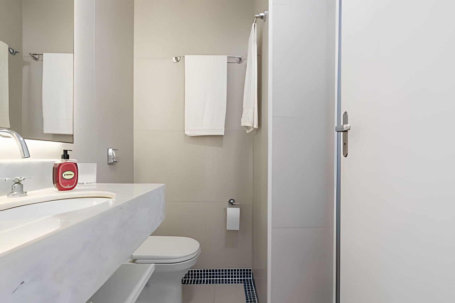 Hay dos baños más en el departamento, ambos con agua caliente.