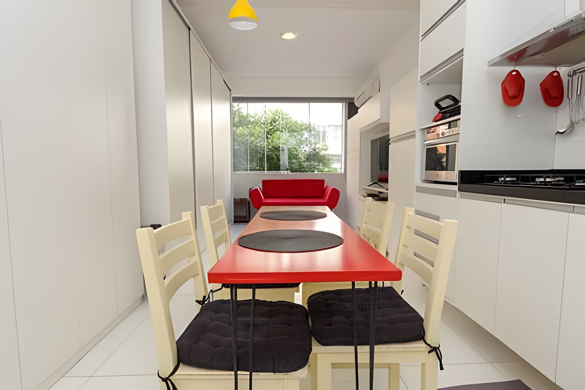 La cama queen retráctil se transforma fácilmente, maximizando el espacio durante el dia. El apartamento es perfecto para una pareja con un hijo pequeño. El aire acondicionado split garantiza su comodidad en todo momento, creando un refugio fresco y tranquilo después de un día explorando las maravillas de Río.