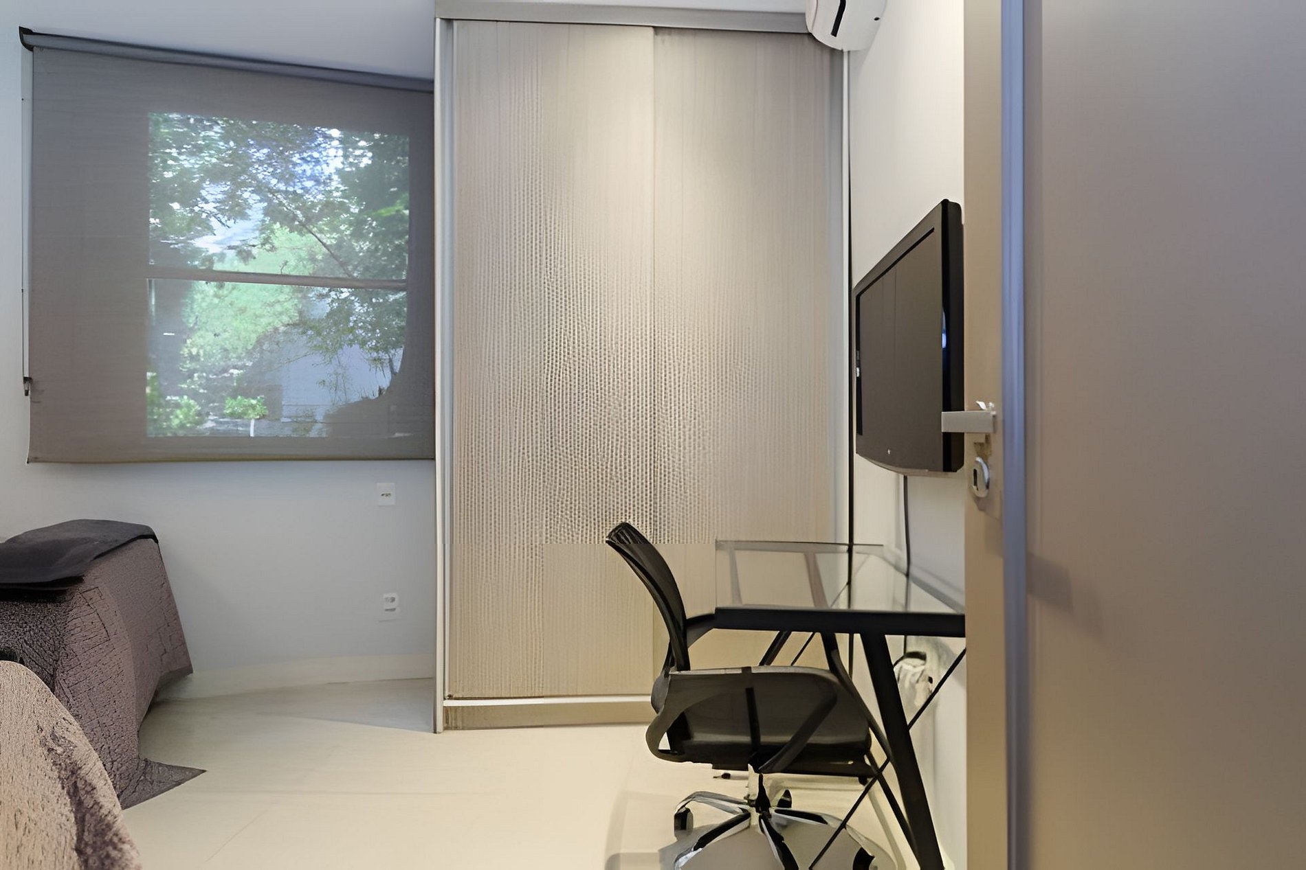 La suite del apartamento está compuesta por una cama queen, armarios, aire acondicionado y un baño completo. La segunda habitación está compuesta por dos camas individuales, aire acondicionado y un armario.