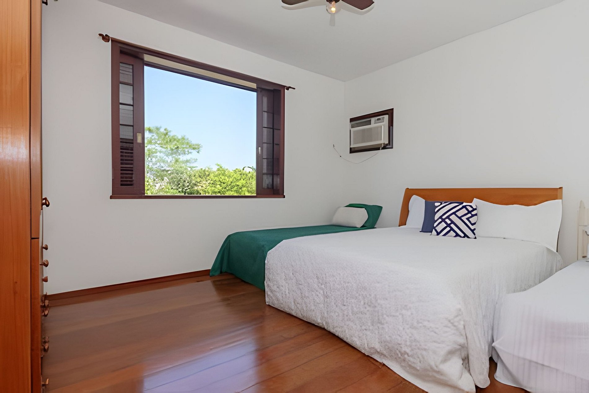 El lugar cuenta con 4 suites, cada suite está equipada con armarios, camas queen y camas individuales, brindando espacio y comodidad a todos los huéspedes. Todos cuentan con aire acondicionado y ventilador de techo, asegurando una perfecta climatización en cualquier época del año. Disponemos de un quinto dormitorio con cama de matrimonio.