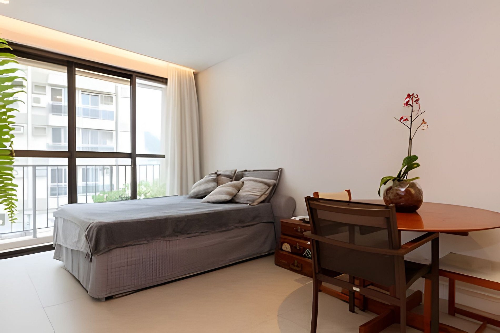Este hermoso estudio a 5 minutos de la playa de Leblon es el espacio ideal para tus vacaciones en Río, con ambientes pensados para tu comodidad que transmiten una sensación relajante.