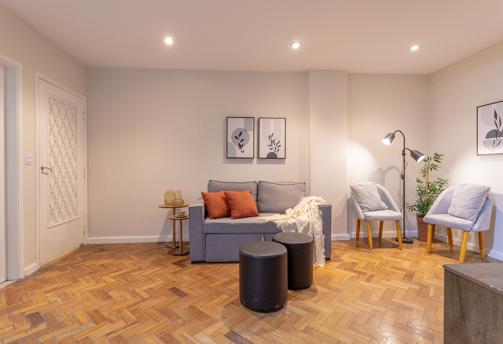 La sala íntima cuenta con un sofá cama, TV inteligente y cuatro sillones.