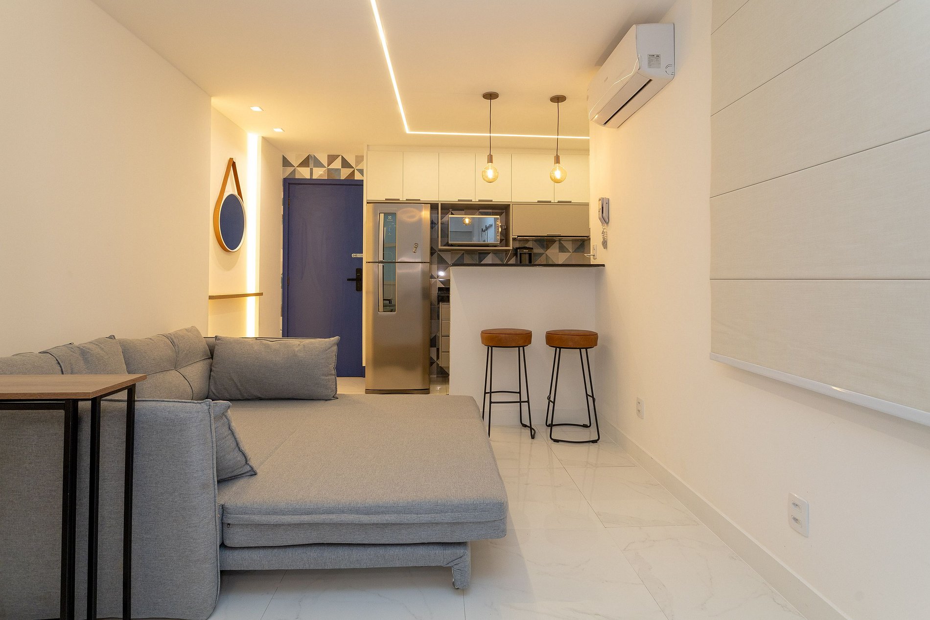 Situado en el corazón de la zona sur de Río, también ofrece fácil acceso a las principales atracciones de la ciudad. A pocos pasos de distancia, encontrará una gran variedad de restaurantes, bares y tiendas. Este departamento de una habitación y una sala ofrece exactamente eso: una experiencia única de alojamiento que combina comodidad y estilo. Al entrar, será recibido por un espacio acogedor, donde cada detalle ha sido pensado para proporcionarle una estancia relajante.