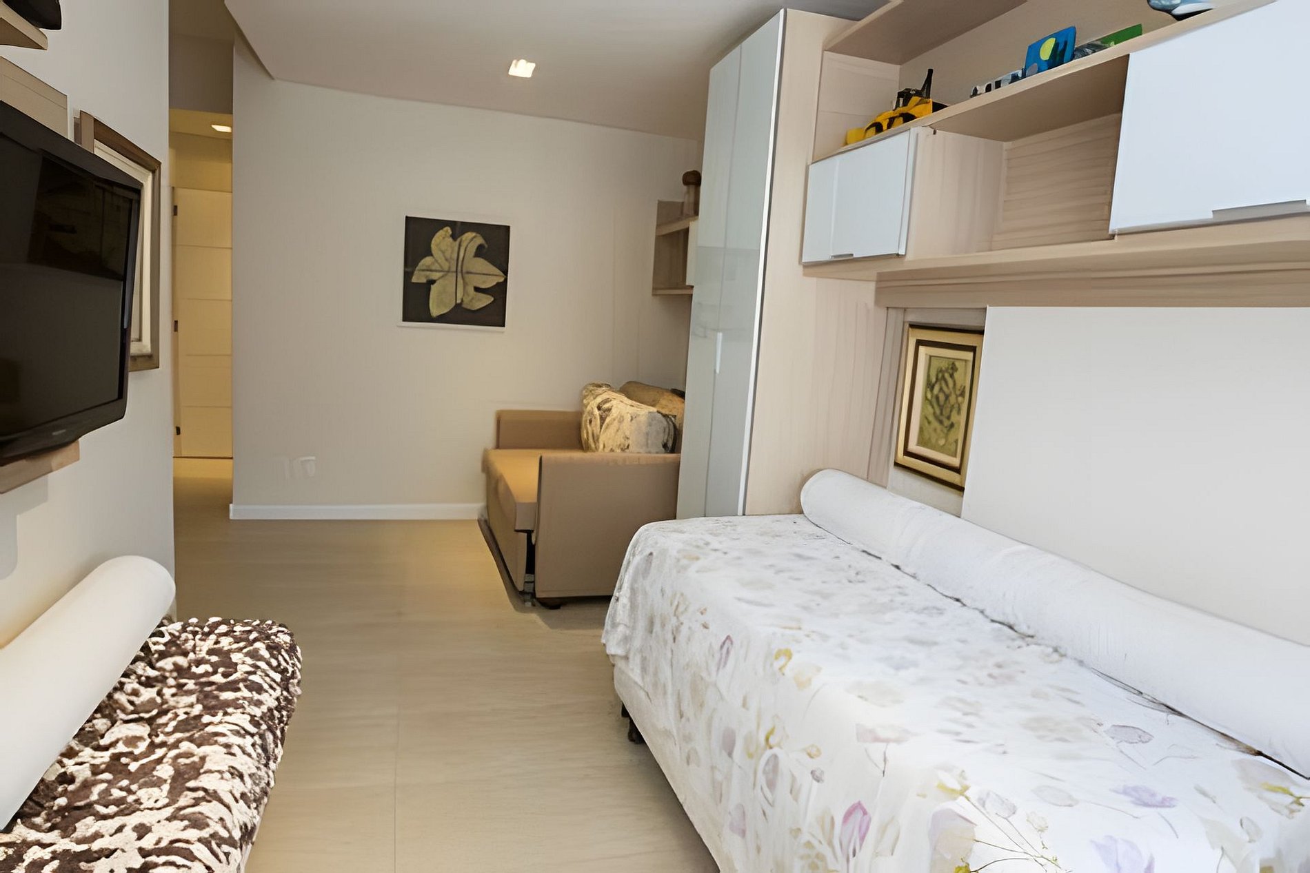 Com uma decoração moderna e espaços bem aproveitados, o apartamento oferece uma experiência de hospedagem excepcional. Os 3 quartos, sendo 2 suítes, são espaçosos e acolhedores, equipados com 1 cama de casal, 2 bicamas de solteiro e 1 sofá-cama de casal, acomodando até 8 hóspedes com todo o conforto. A suite ao lado do banheiro social conta tambem com uma Smart Tv. Cada quarto foi pensado para proporcionar uma atmosfera relaxante e tranquila, garantindo uma boa noite de sono após um dia explorando as maravilhas do Rio.
