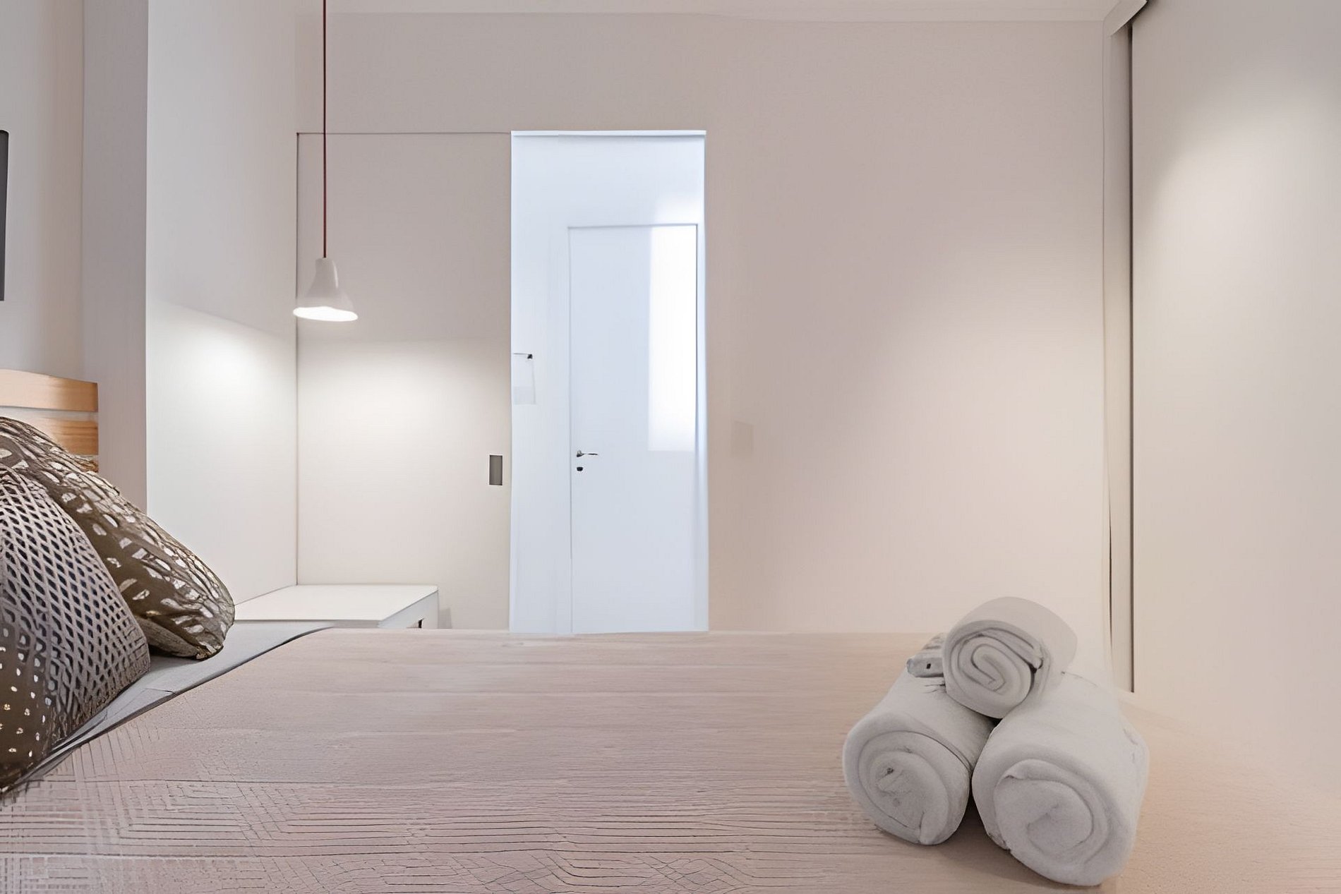 O quarto possui uma cama de casal, ar condicionado, amplos armários e cortina black out, garantindo conforto e praticidade.