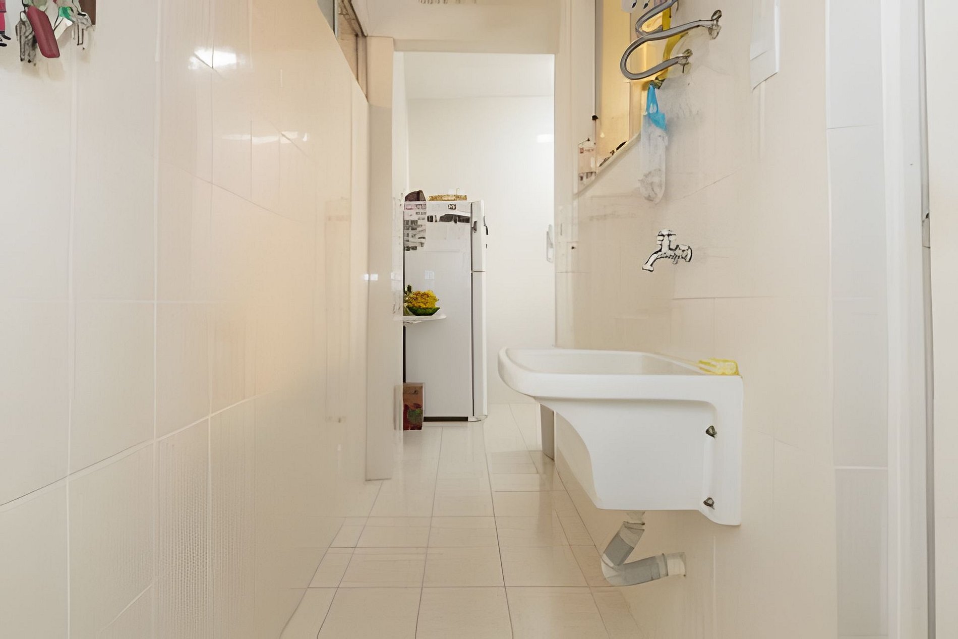 A cozinha está totalmente equipada com todos os itens necessários para preparar suas refeições. Inclui geladeira, micro-ondas e fogão, garantindo praticidade e conforto durante sua estadia. O apartamento dispõe de um banheiro moderno e funcional.
