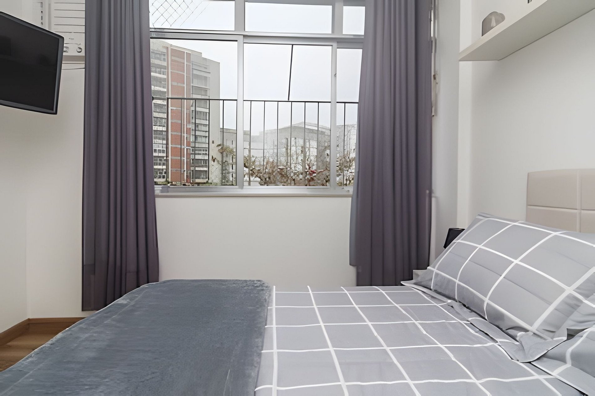 Além da privilegiada localização, o interior do apartamento não fica atrás. A sala e todos quartos são equipados com ar-condicionado para o conforto de nossos hóspedes. Contamos com Internet Banda Larga de 120 Mega com WiFi e Tv a Cabo Hd. Possui Tv a cabo em um quarto e na sala. Na sala de dois ambientes temos uma Tv Samsung Lcd 42” e um dvd player (no apartamento há uma seleção de filmes disponíveis aos nossos hóspedes). Temos um quarto de casal com televisão e Tv a Cabo; e outros dois quartos, cada um com uma cama de casal. Ao todo, temos espaço para receber 8 hóspedes confortavelmente, 7 pessoas nos quartos e 1 pessoas na sala, que possui um colchão para este último hóspede. São dois banheiros sociais com aquecedor a gás de 22l e blindex. A cozinha é totalmente equipada para todas as essencialidades comuns do dia a dia, e, se preciso, podemos atender a outras necessidades que o hóspede venha a ter. O prédio é seguro, tranquilo e familiar.