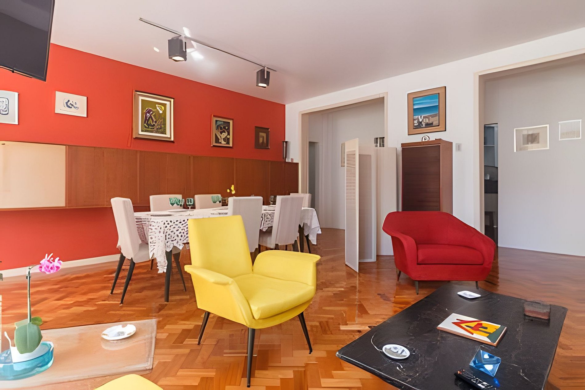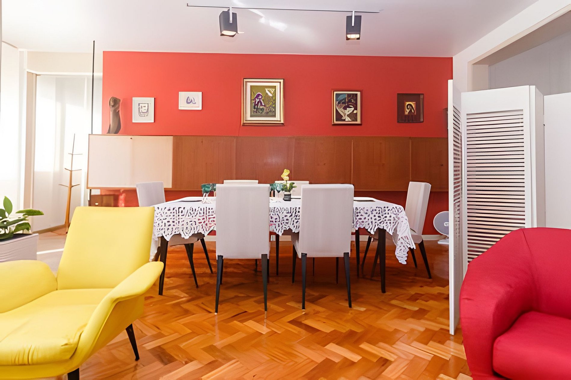 Esta acomodação está presente no bairro do Leblon. O prédio está localizado na quadra da praia, na Rua Venâncio Flores, perto das principais zonas do bairro onde há diversidade de lojas, bares e restaurantes para conhecer, sua altura é entre o Posto 11 e o Posto 12. O prédio está situado próximo a Praça Antero de Quental, que dispõe de estação de metrô e linhas de ônibus próximas que facilitam a locomoção pela cidade.