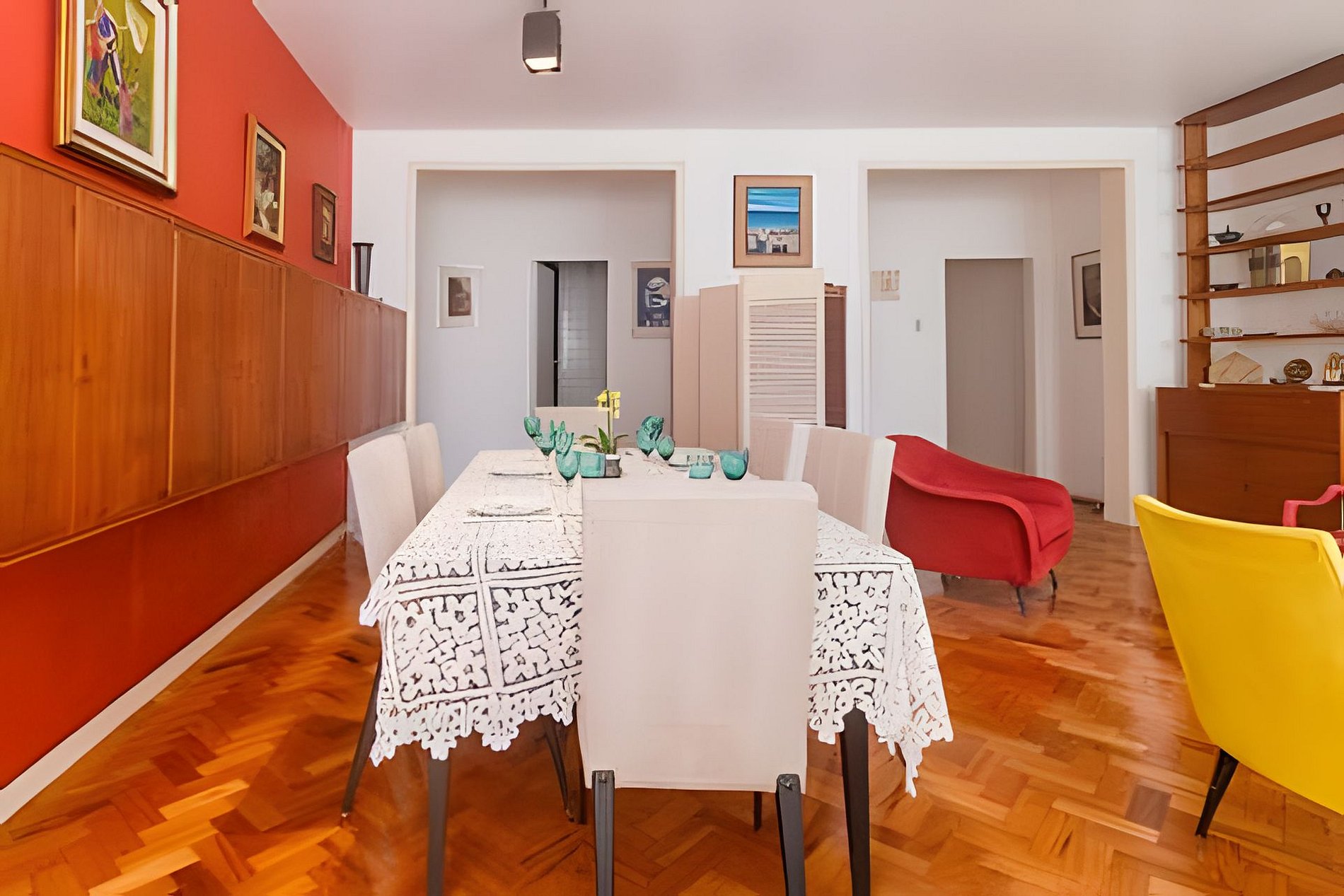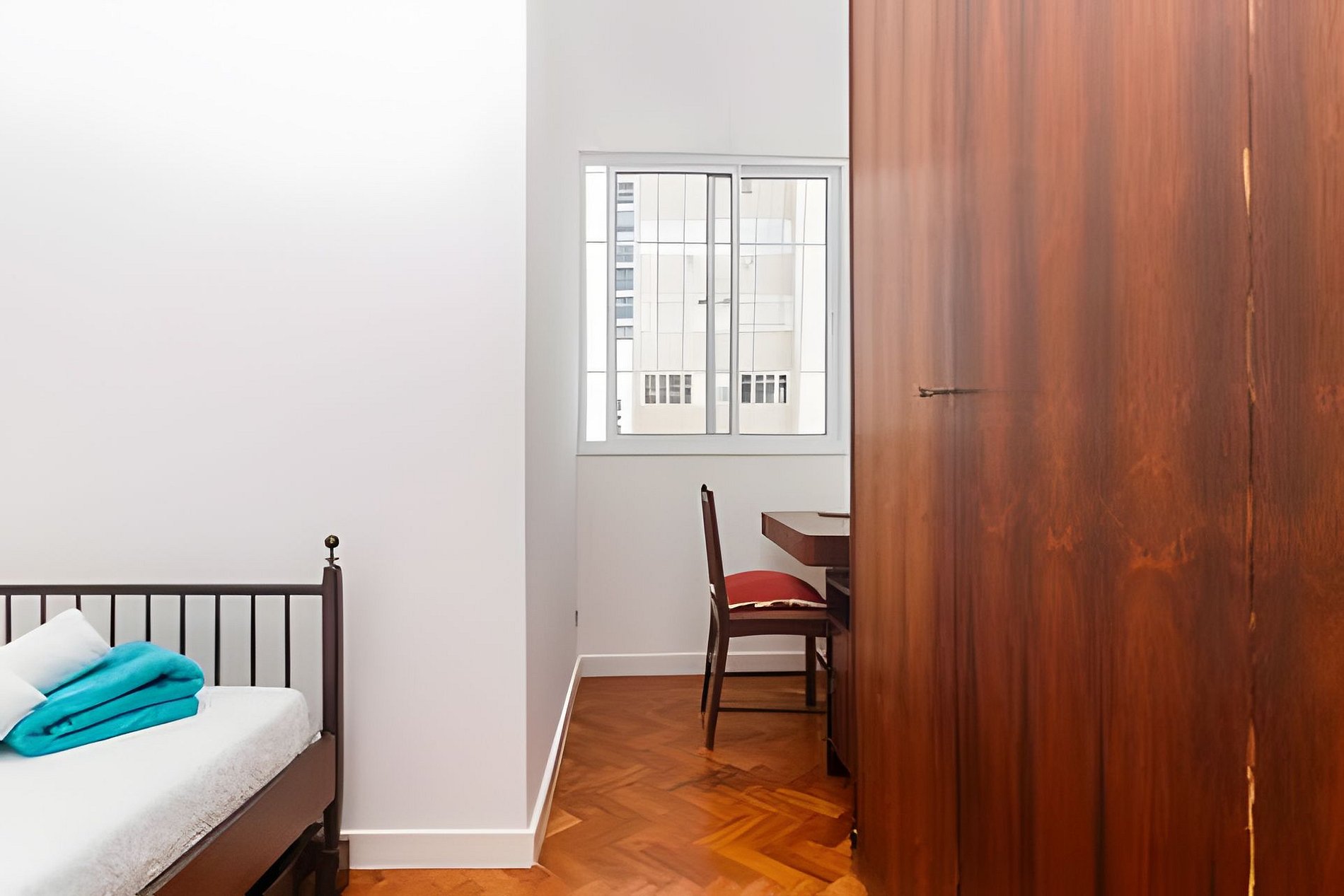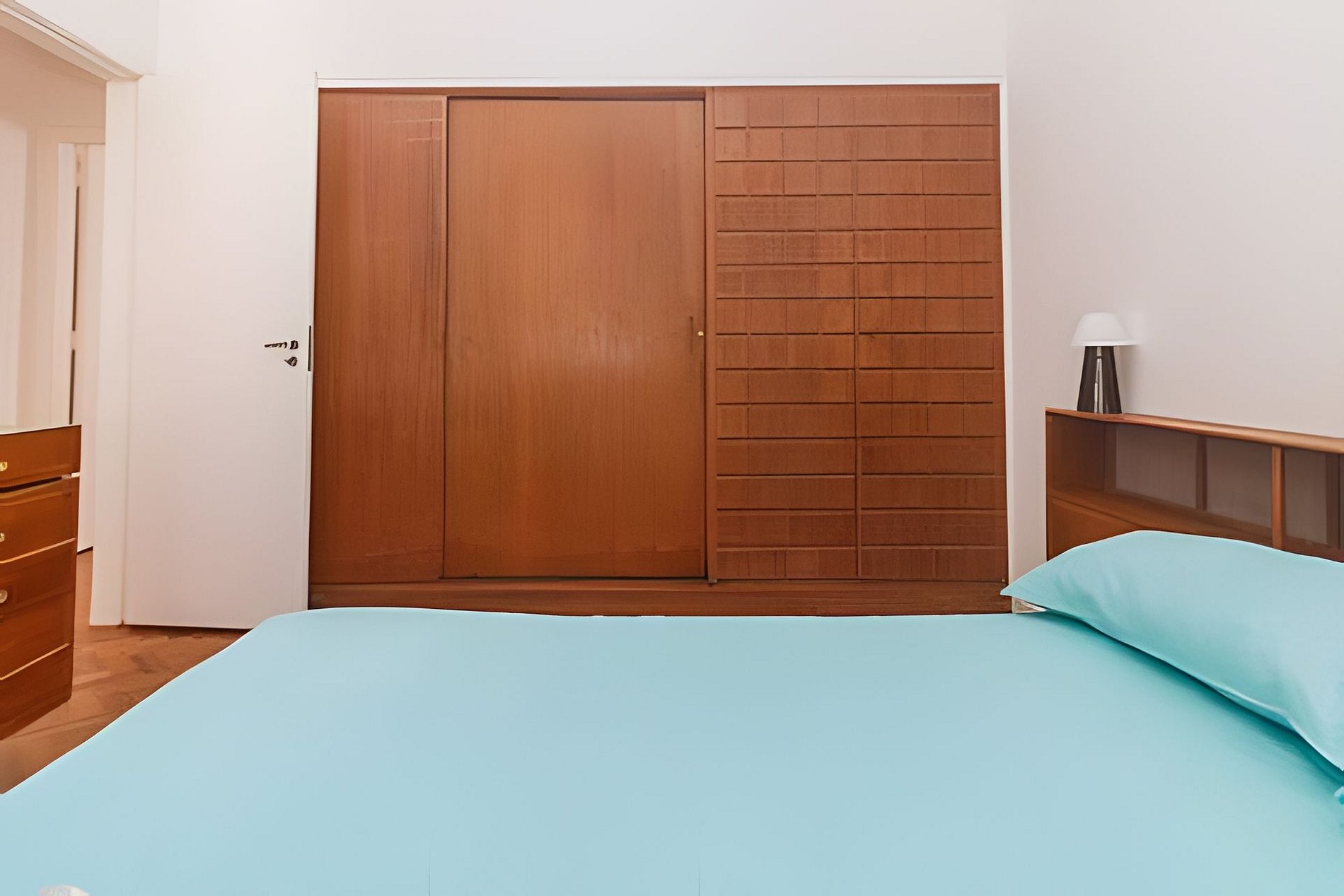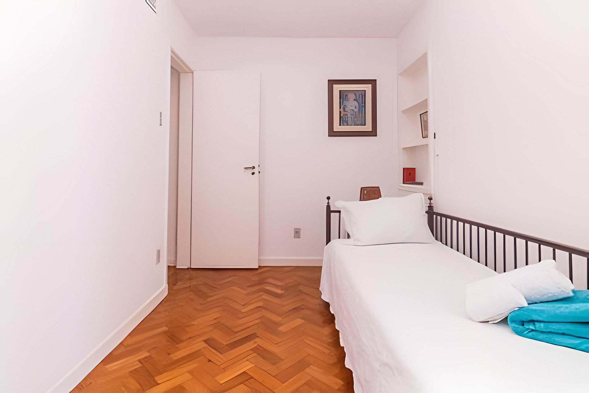 O apartamento conta com três quartos, somando a bicama de solteiro na sala, se torna possível acomodar até 6 pessoas no apartamento. O local dispõe de dois banheiros para uso dos hóspedes.
