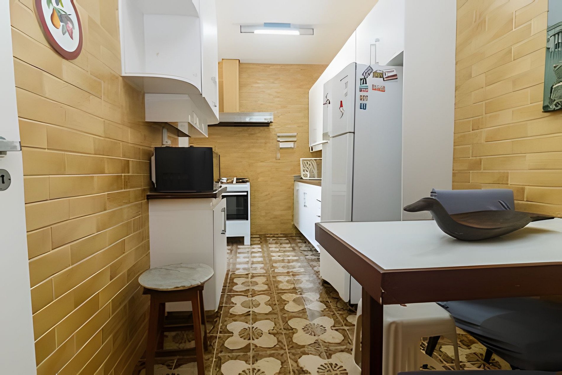 A acomodação dispõe de sala de estar com ar condicionado, mesa para refeições, Tv a cabo e Wi-Fi. A cozinha é equipada com armários, talheres, utensílios e eletrodomésticos para tornar sua locação completa, disponibilizamos roupa de cama e banho.