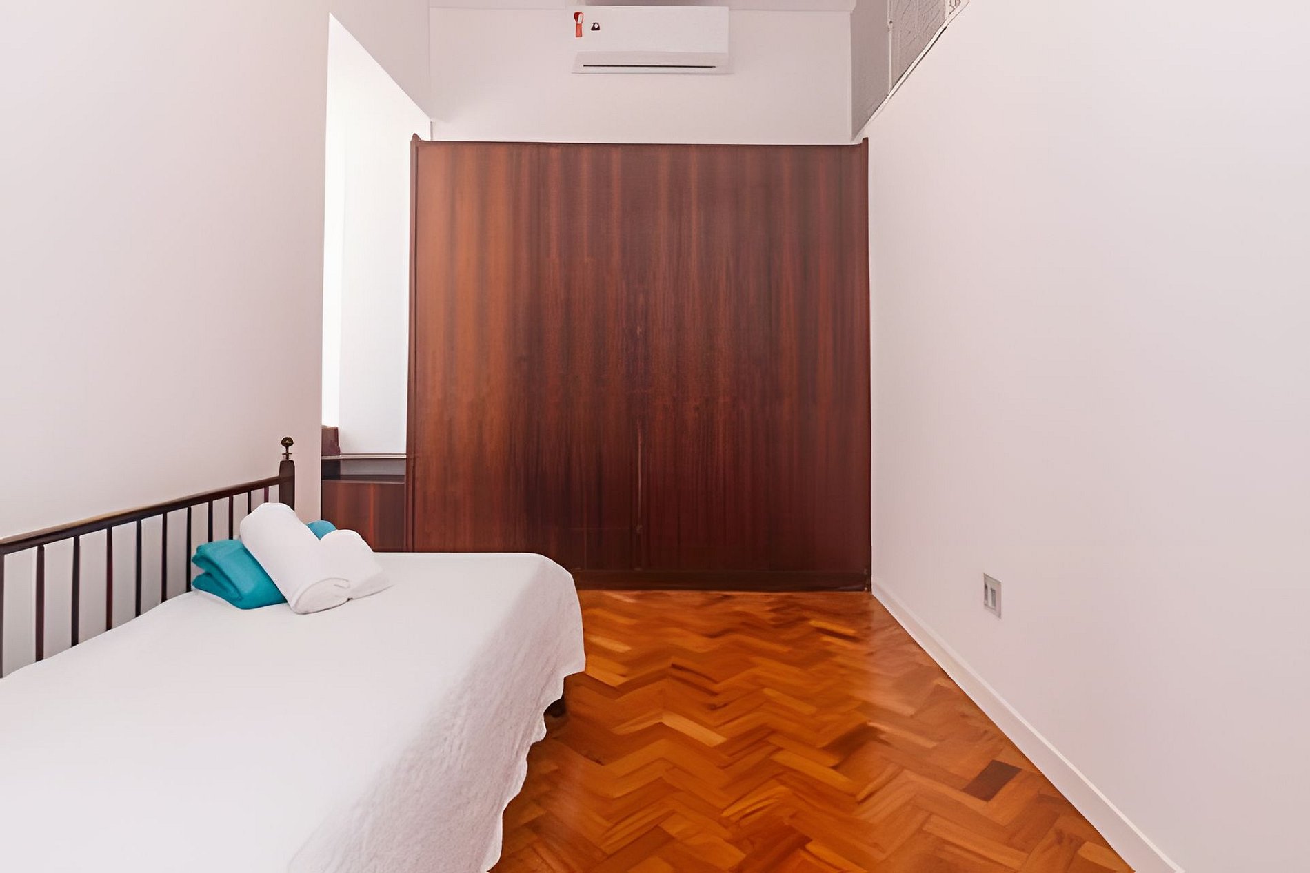 O apartamento conta com três quartos, somando a bicama de solteiro na sala, se torna possível acomodar até 6 pessoas no apartamento. O local dispõe de dois banheiros para uso dos hóspedes.