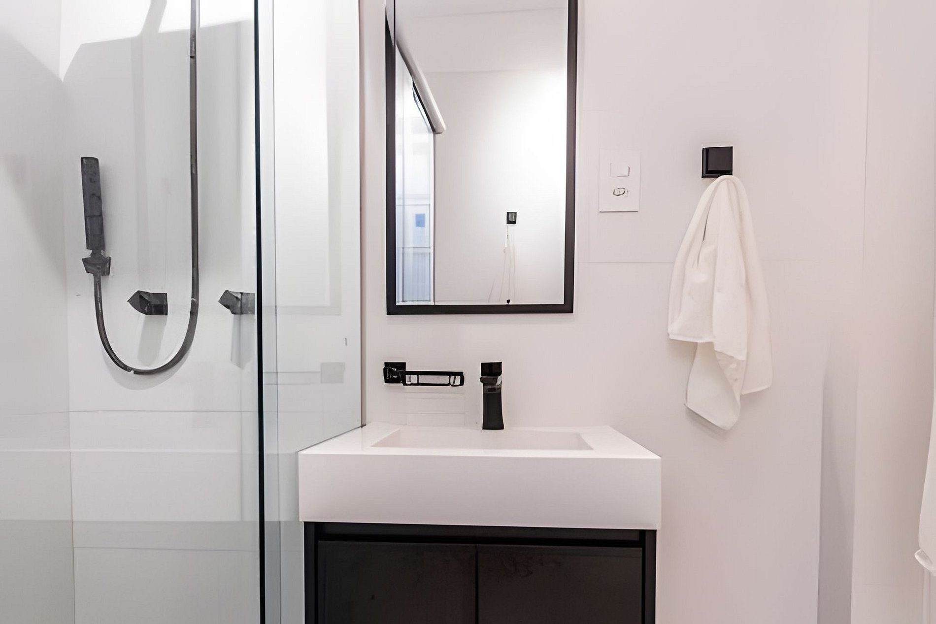 A cozinha está totalmente equipada com todos os utensílios necessários para preparar suas refeições de forma prática, incluindo geladeira, forno e cooktop. O banheiro moderno conta com secador de cabelo e, para sua conveniência, há também uma máquina de lavar e secar roupas.