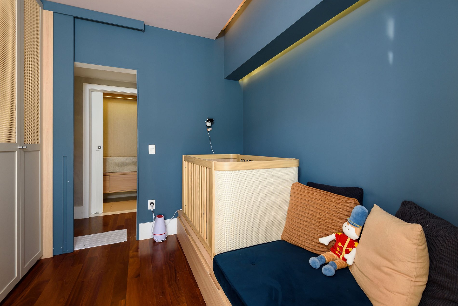 No primeiro piso, encontramos uma suíte confortável com cama queen e armário, além de uma sala de estar integrada a uma sala de jantar ampla, ideal para momentos em família ou com amigos. Há ainda um quarto de bebê, equipado com berço e poltrona, perfeito para acolher os pequenos com conforto. Esse quarto possui uma porta que se conecta diretamente à varanda, criando um acesso prático e encantador.