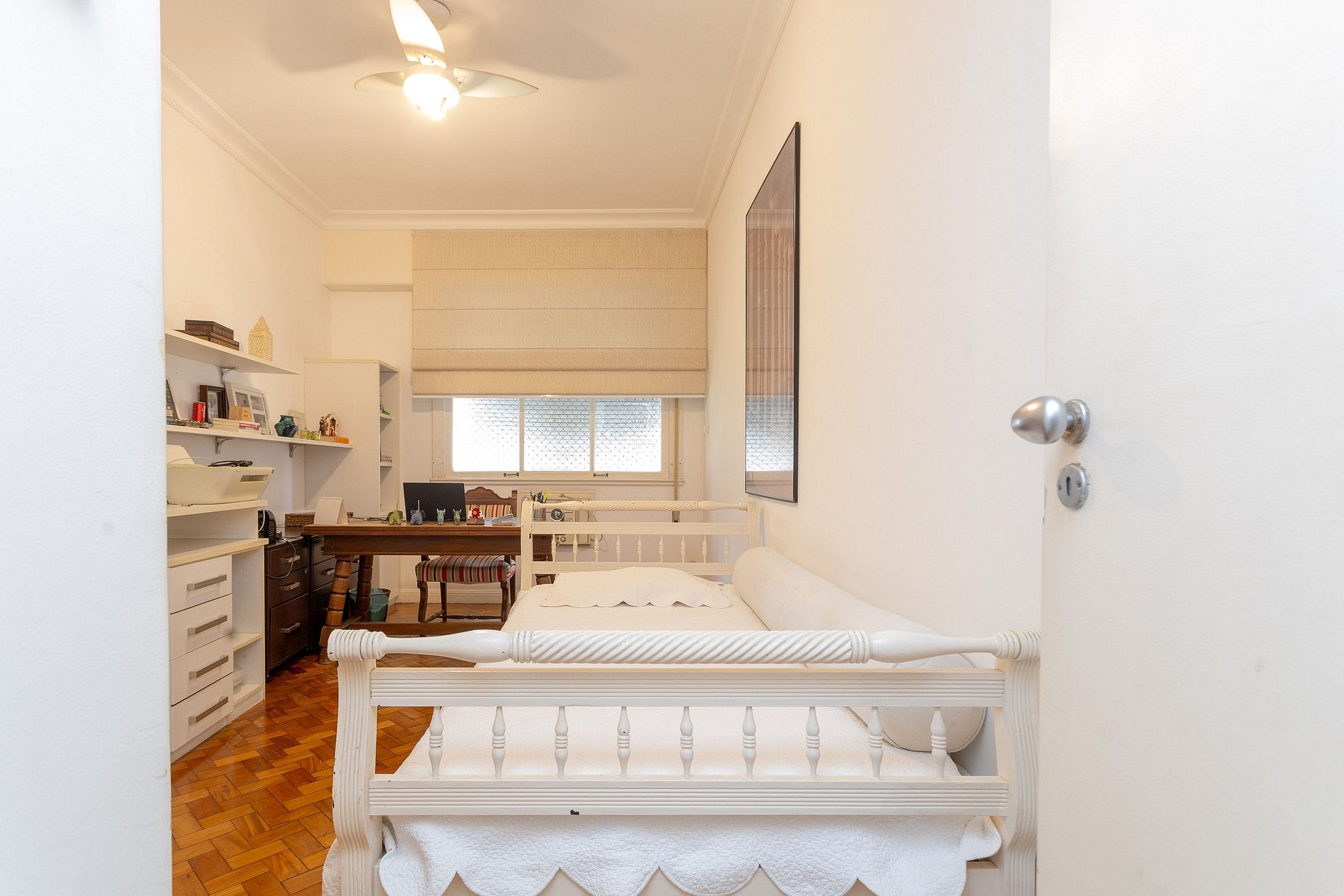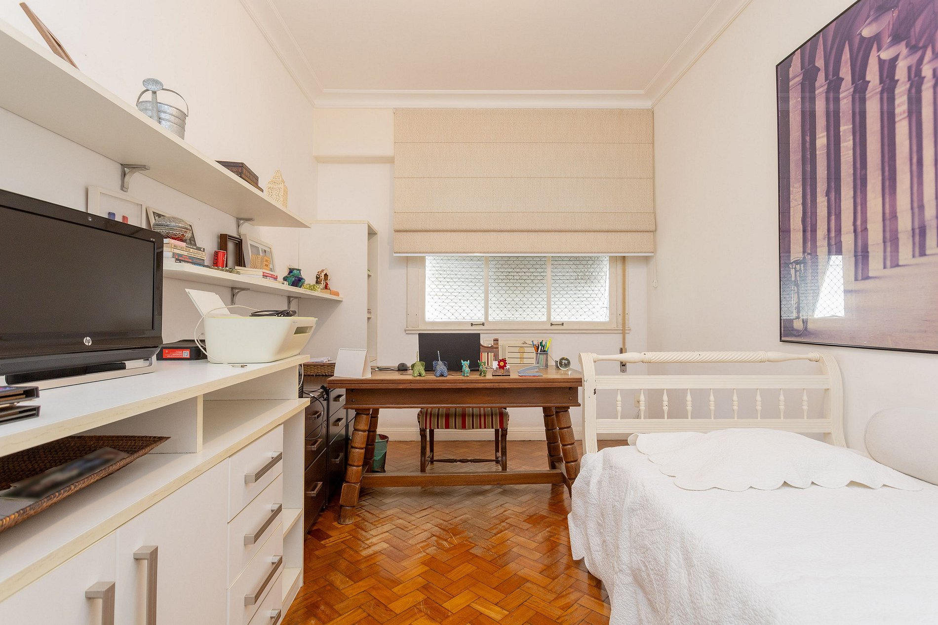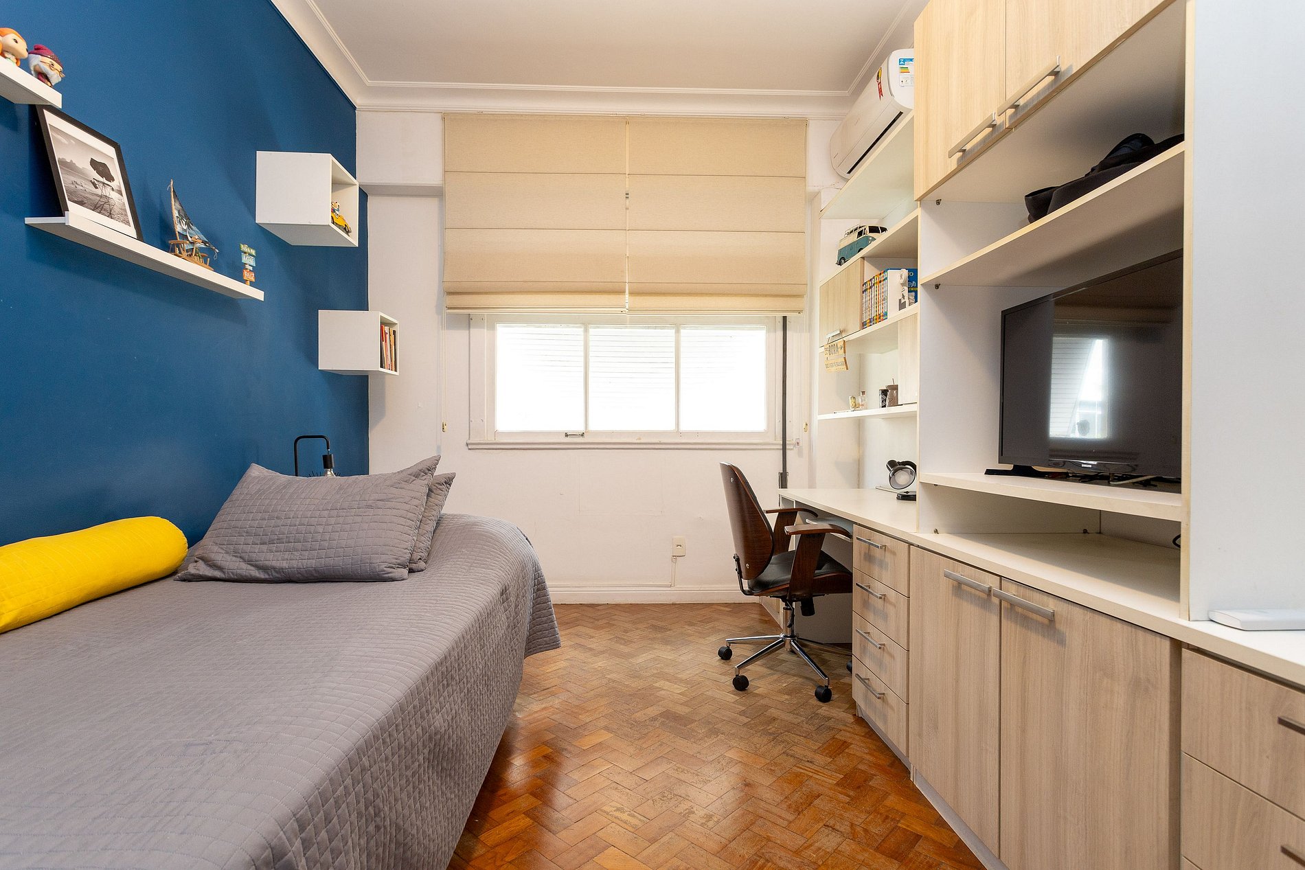 Quarto 3: 2 camas de solteiros, armários, espaço home office e ar condicionado.