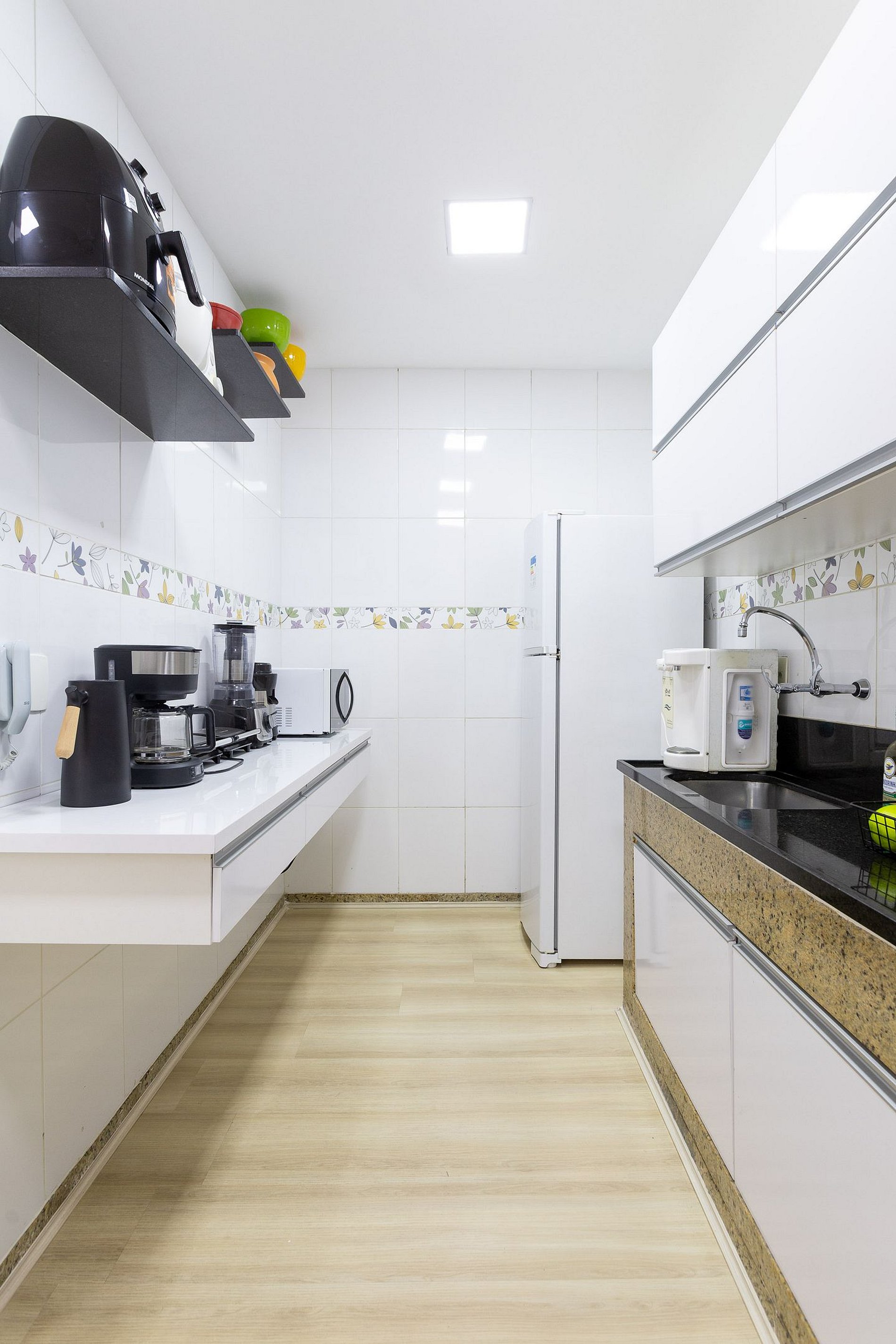 Cozinha: Fogão, forno, cafeteira de cápsulas, microondas, torradeira, panelas, pratos, copos e talheres.