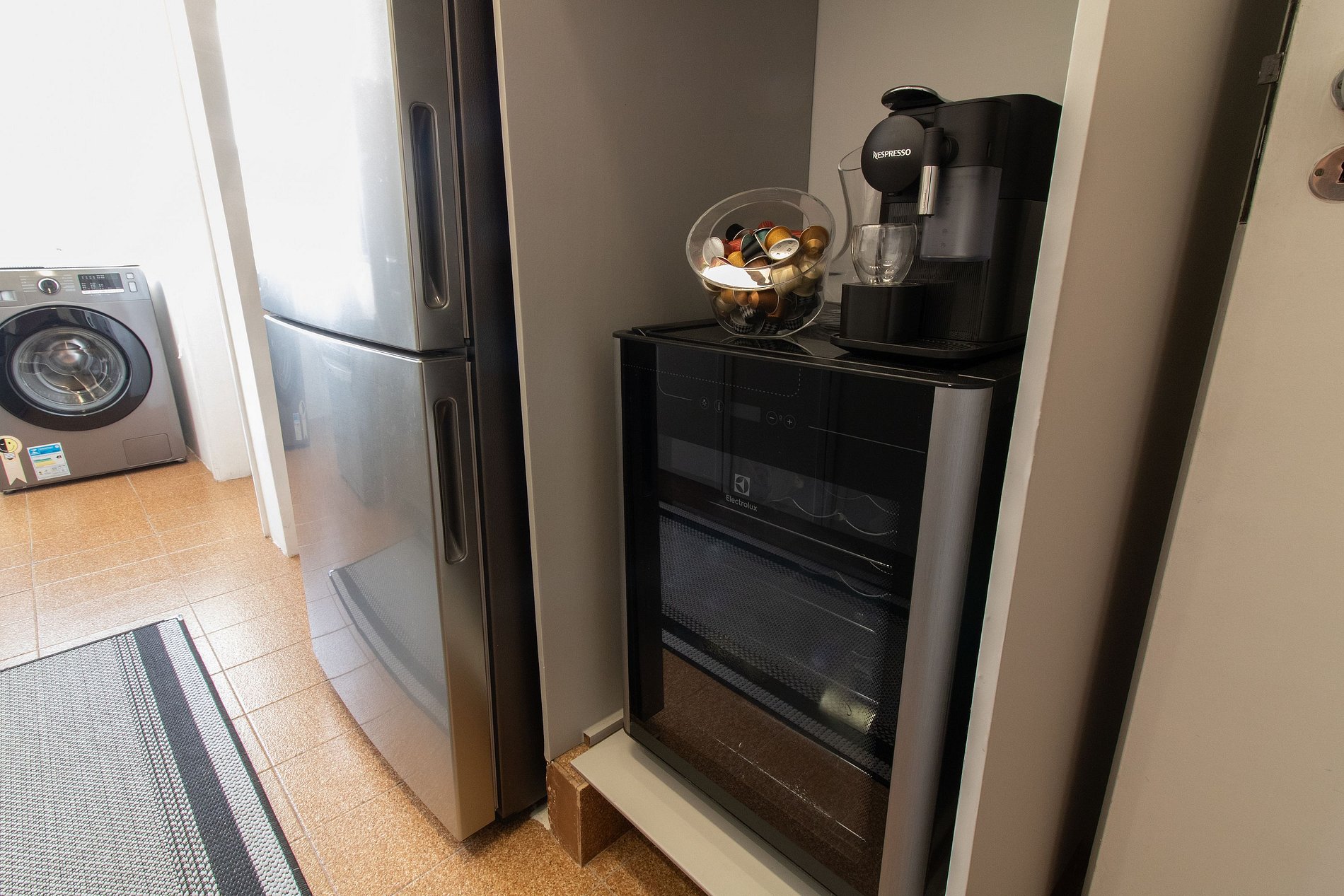 Sala possui um sofá, uma poltrona, mesa para jantar com 4 lugares, smartv e dois ventiladores. A cozinha é completa, contendo fogão, forno, geladeira, lava louças, máquina de café, microondas, panelas, talheres, pratos e copos. O duplex também possui um anheiro completo e um lavabo.