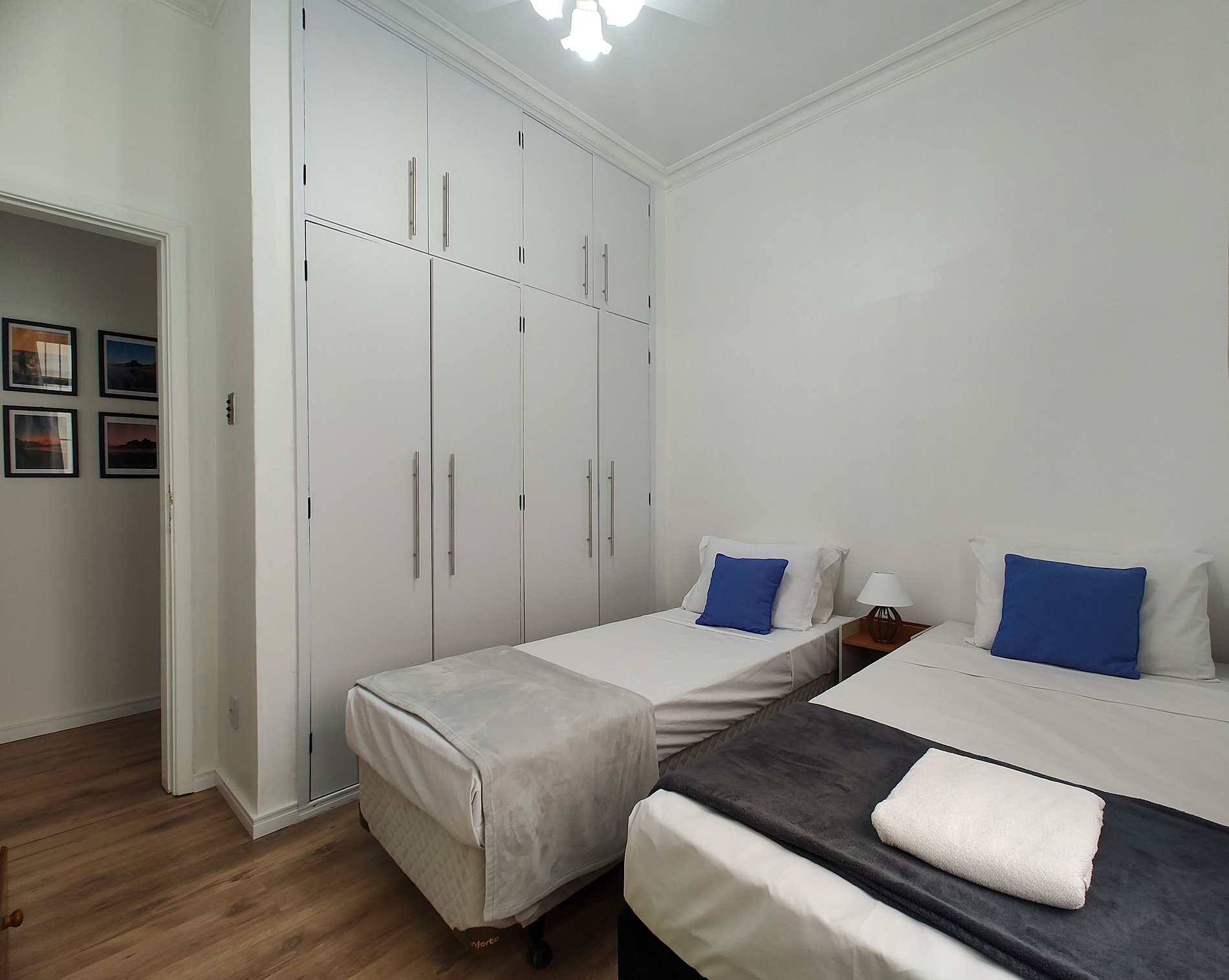 Quarto 2: 2 camas de solteiro, ventilador de teto, amplo armário e cortinas blackout.