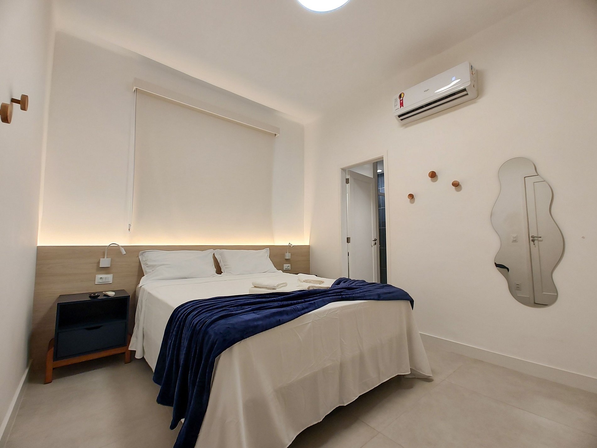 Suíte: Uma cama queen, smartv, ar condicionado, banheiro completo e cortinas blackout.