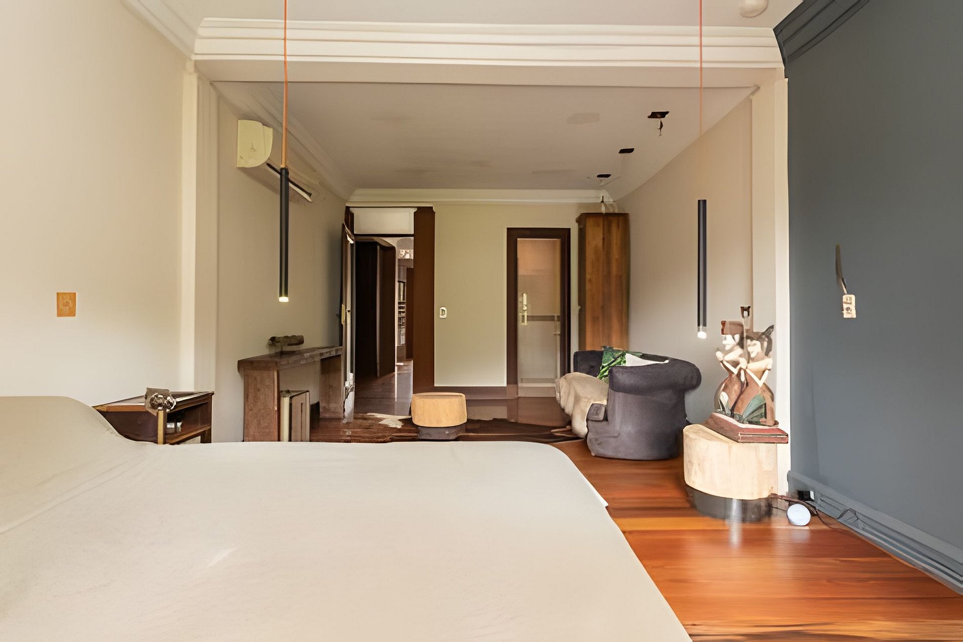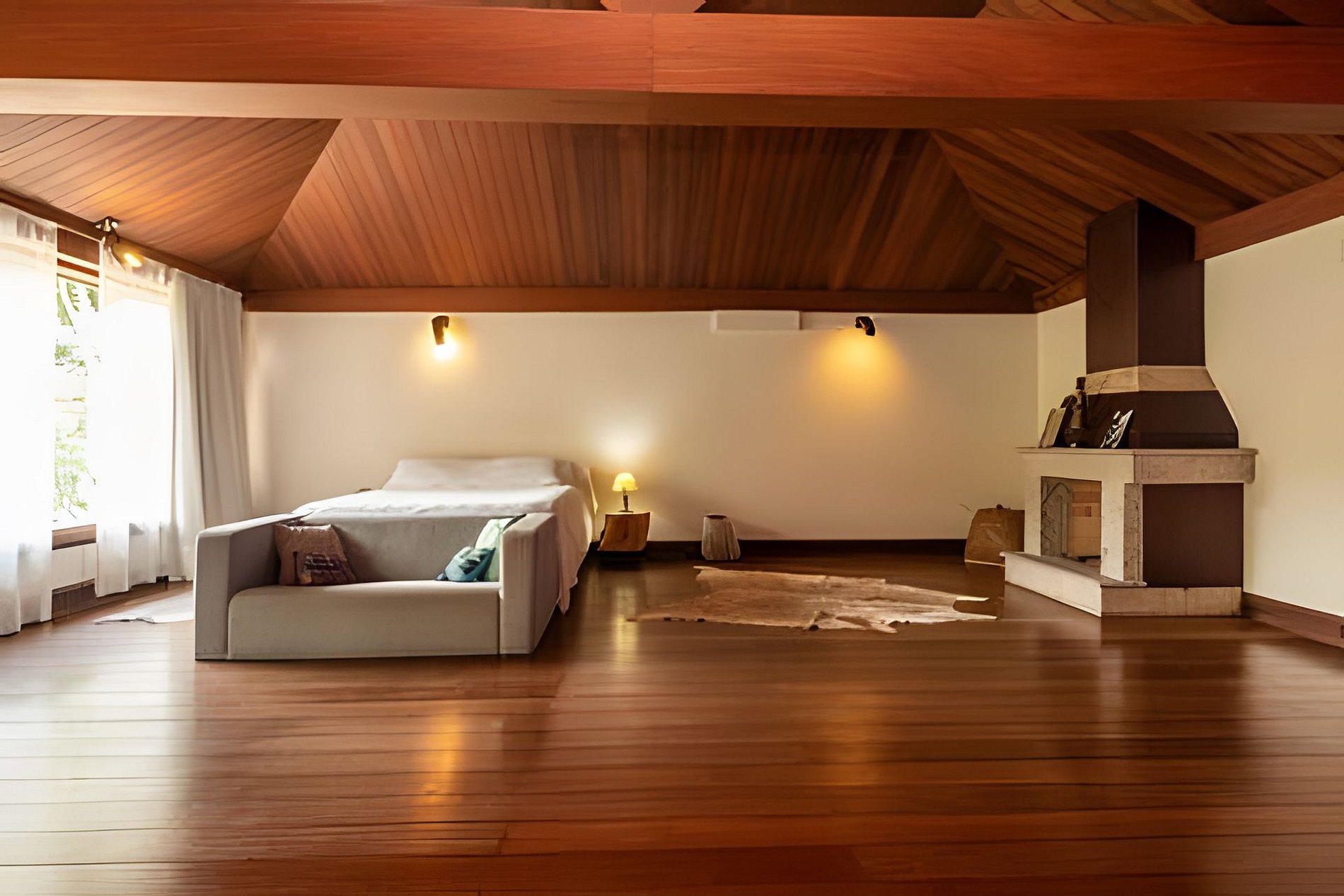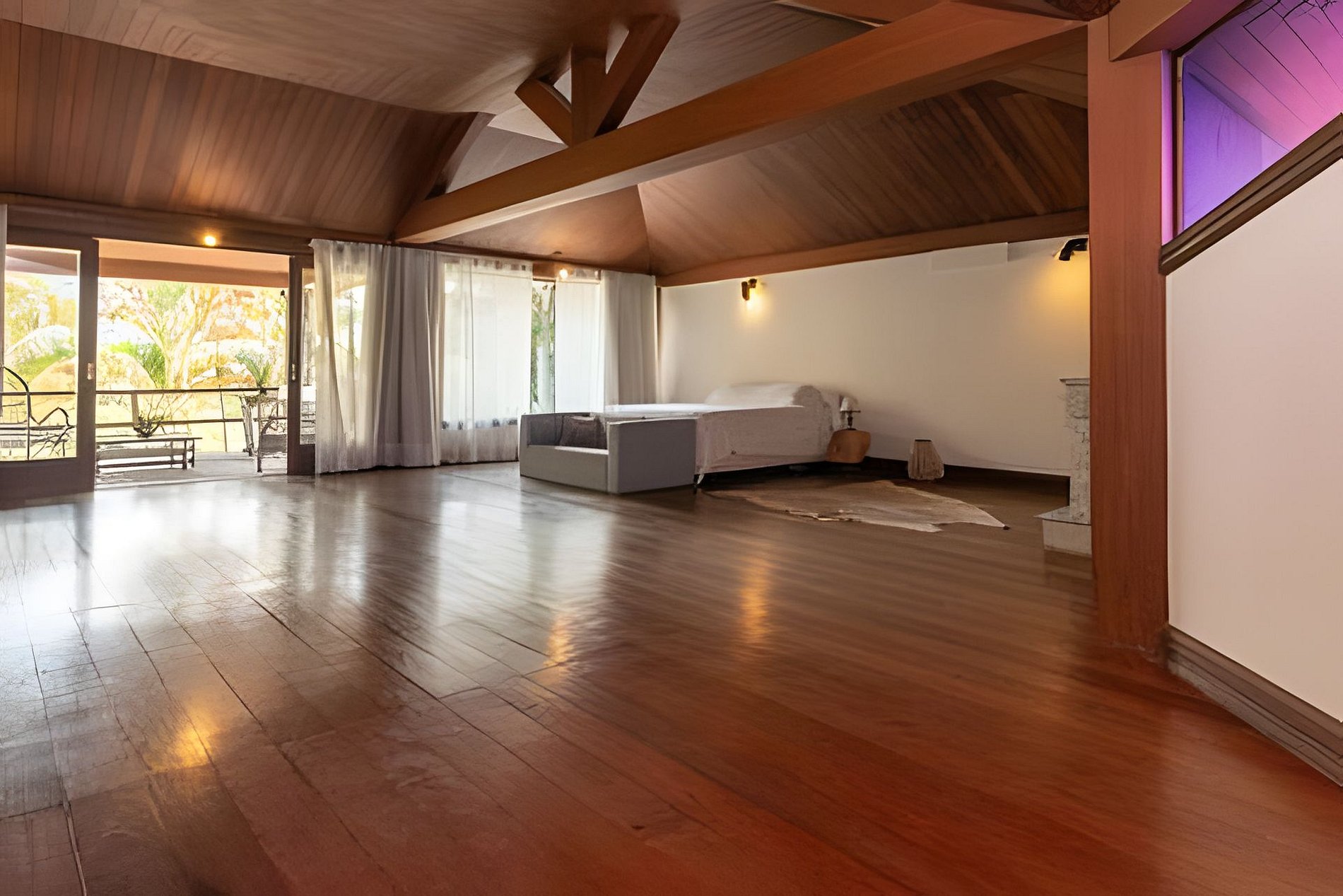 A casa dispõe de 4 quartos, sendo 3 suítes, todos climatizados com ar condicionado split. A suíte master tem 90 m² e vem equipada de cama king size, varanda, sofá, guarda roupa e espaço para praticar meditação e yoga. Os demais quartos contam com cama queen.